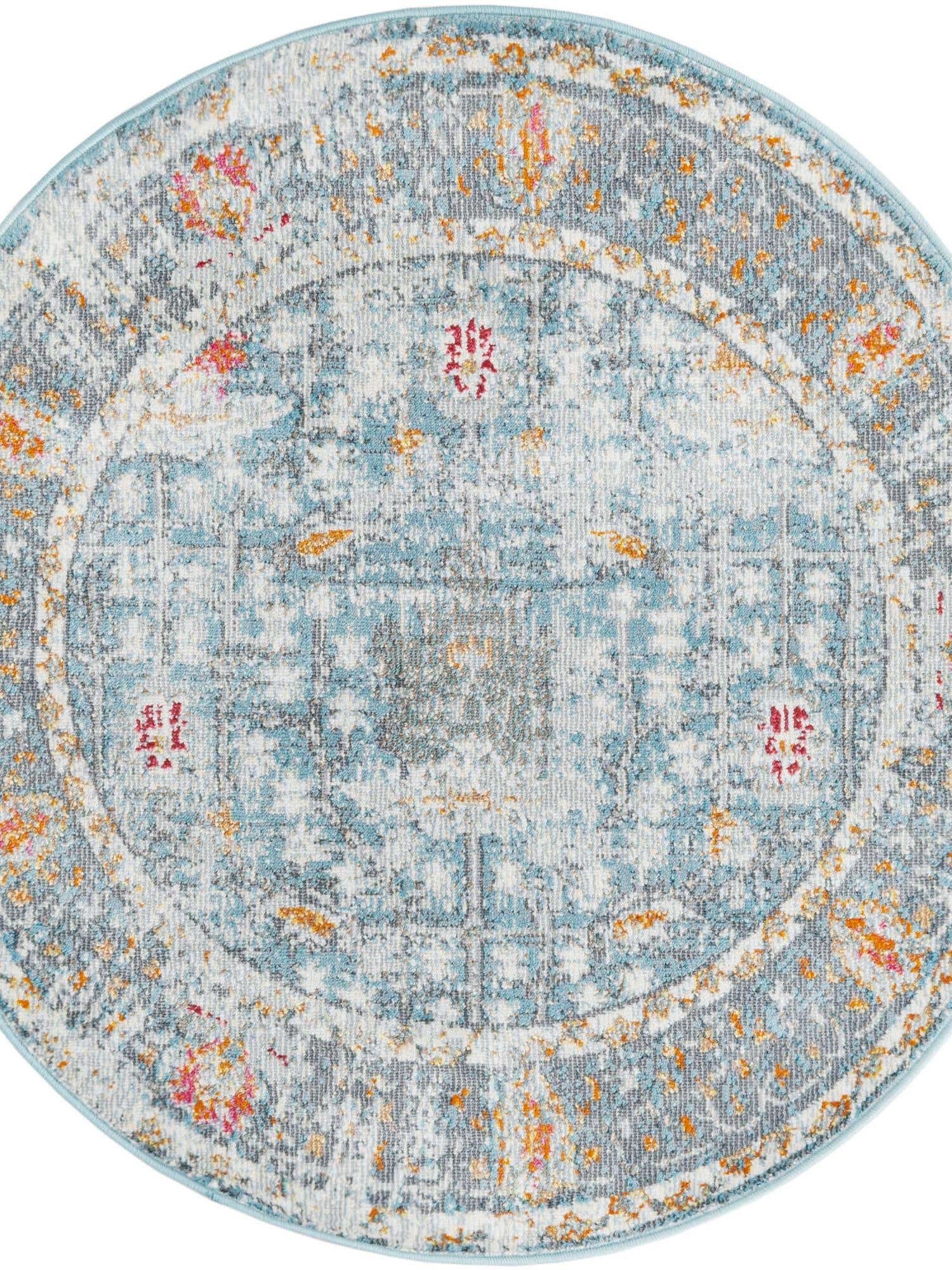 Washable Blue 5' x 5' Timeless Round Area Rug Easy to Clean Stain Resistant & Durable