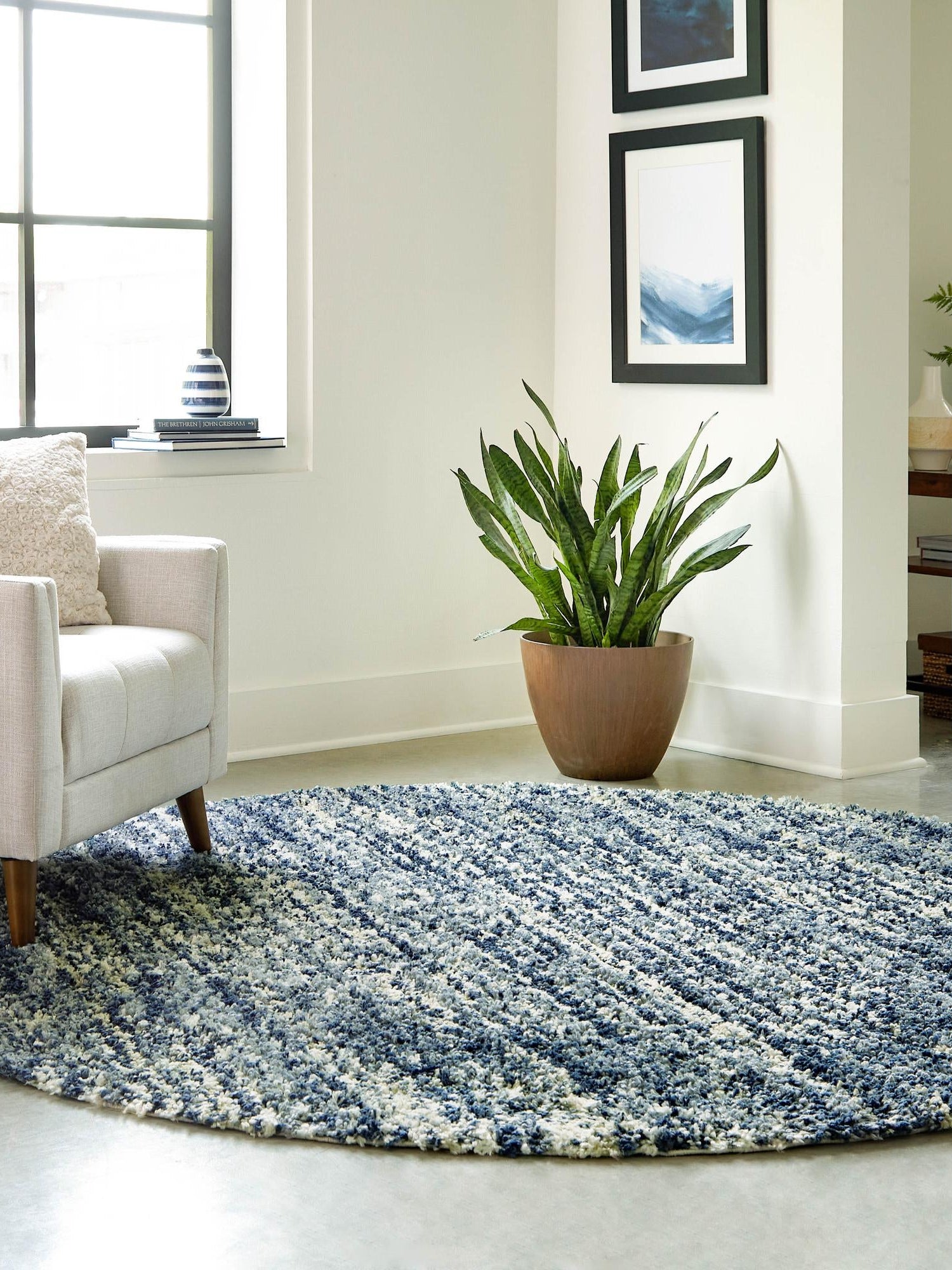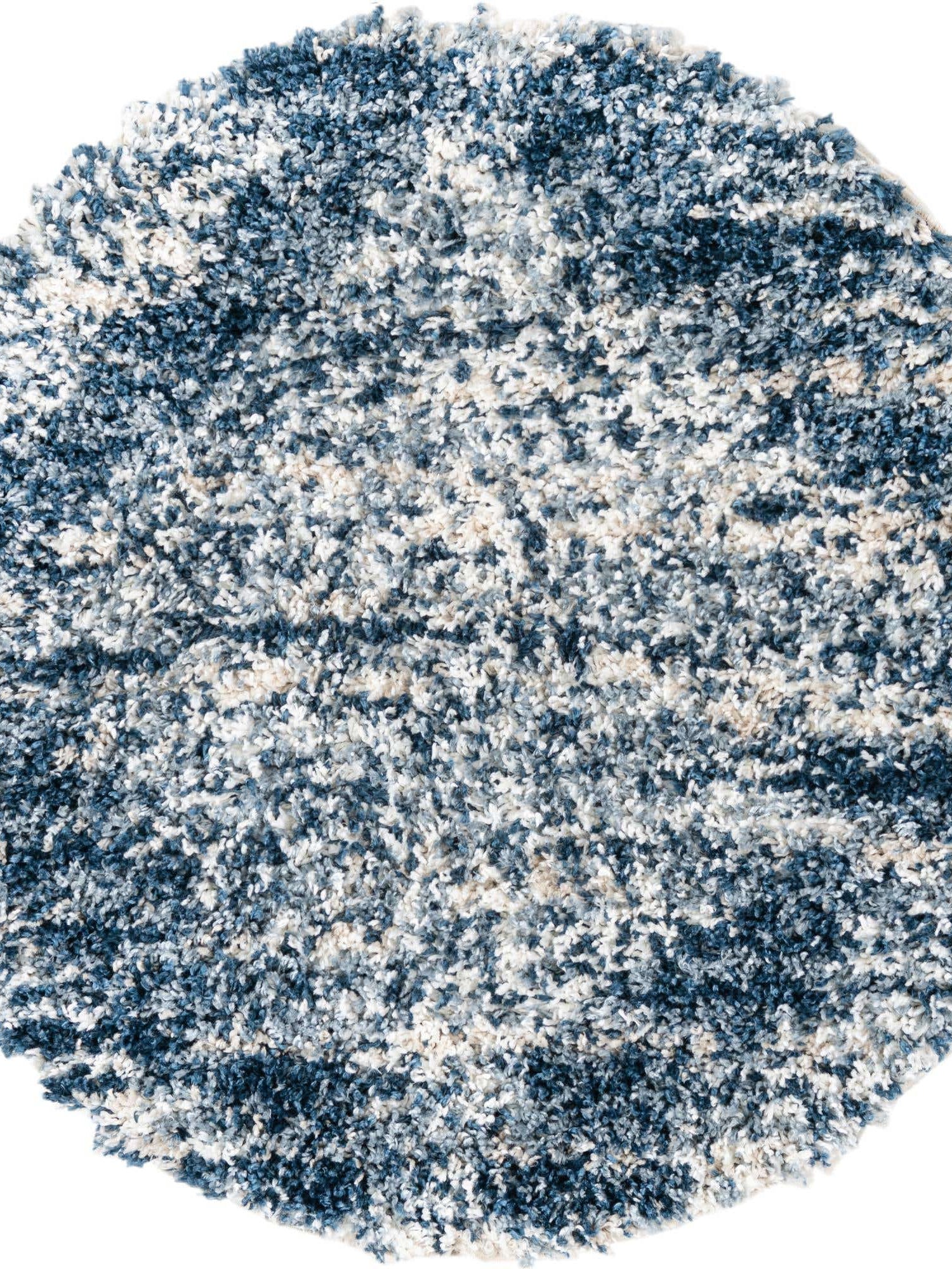 Blue 3' 3 x 3' 3 Serenity Shag Round Area Rug Thick Soft To...