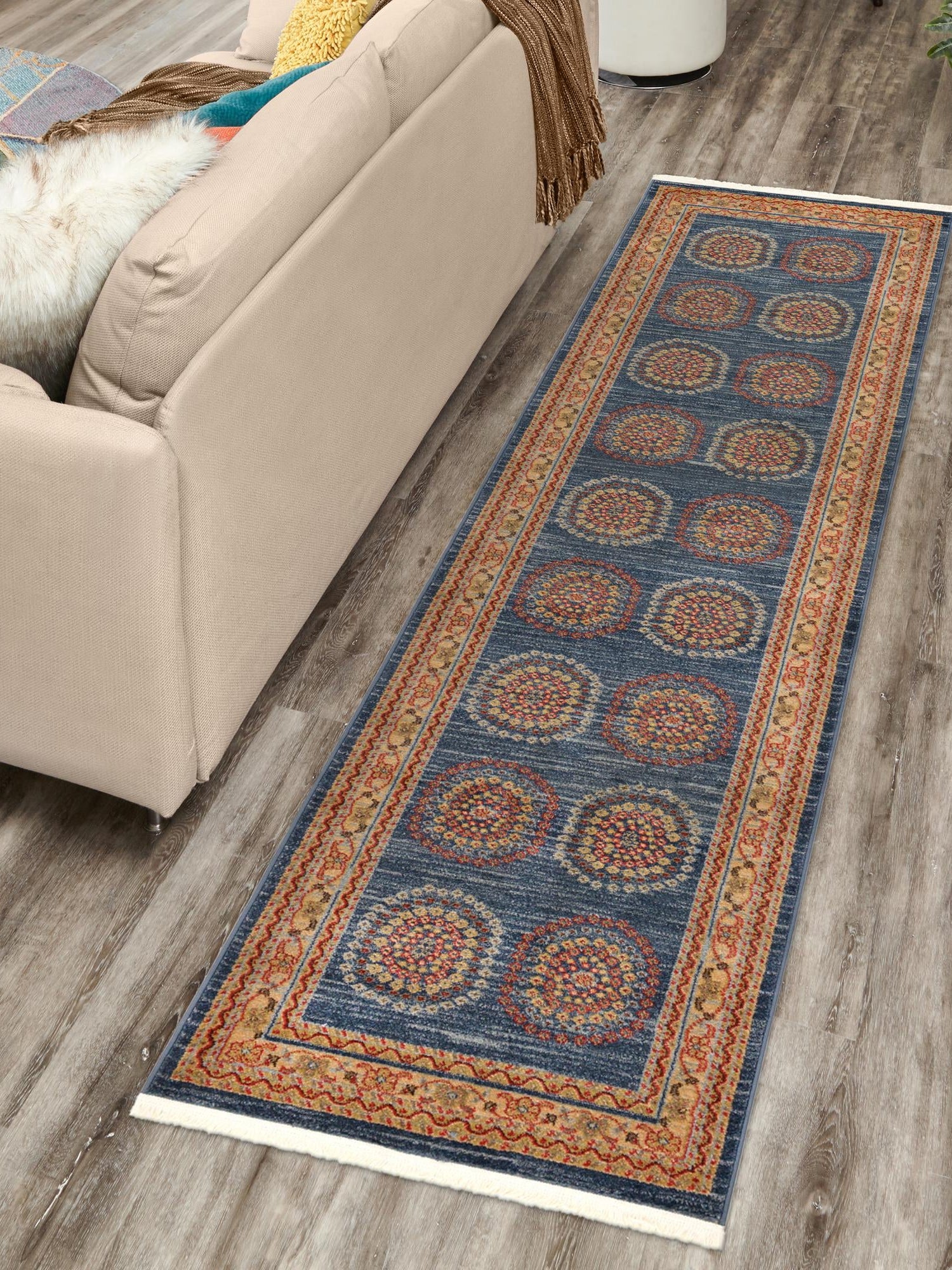 Washable Royal Blue 2' x 5' Yara Runner Area Rug Easy to Clean Stain Resistant & Durable