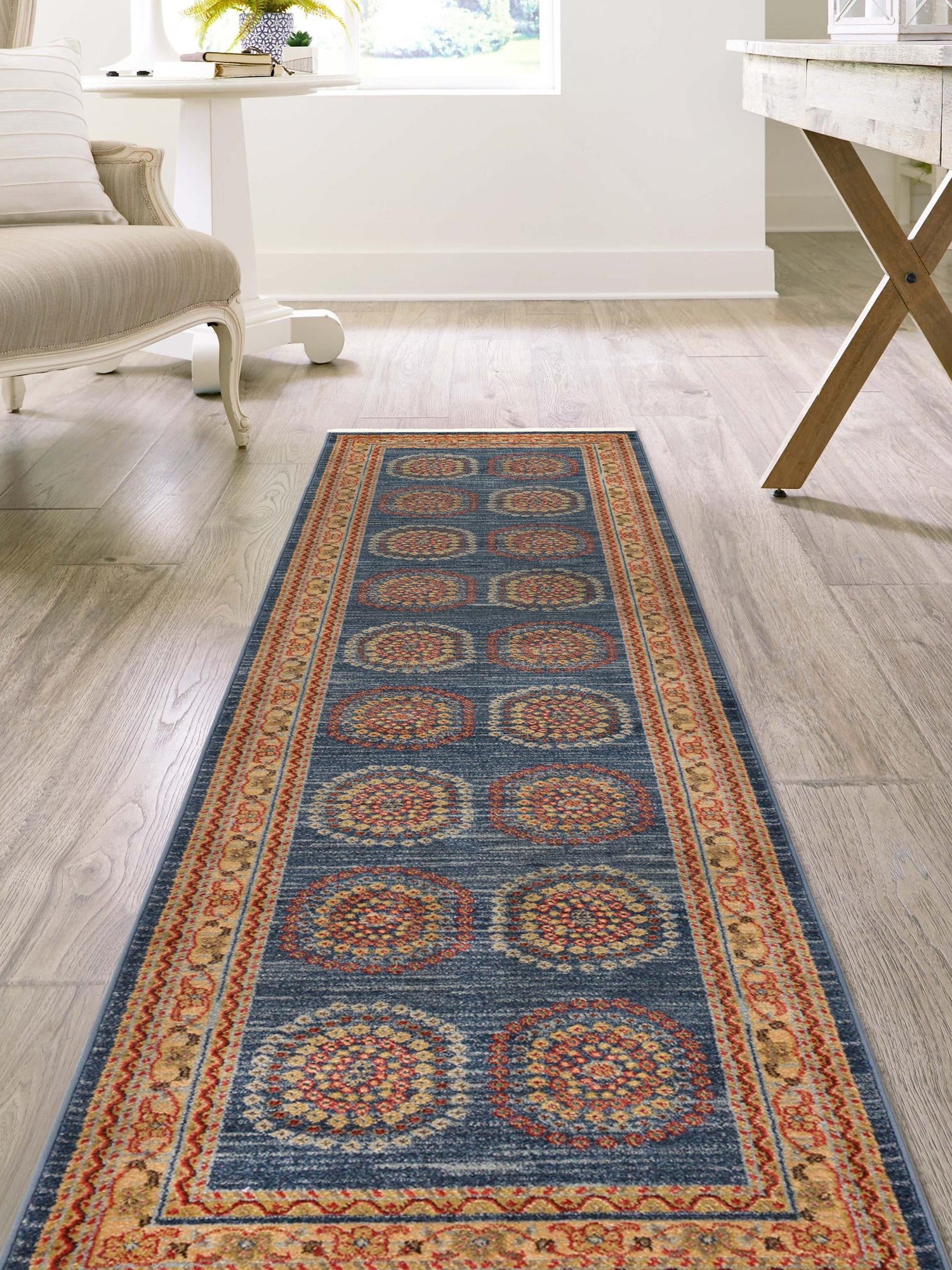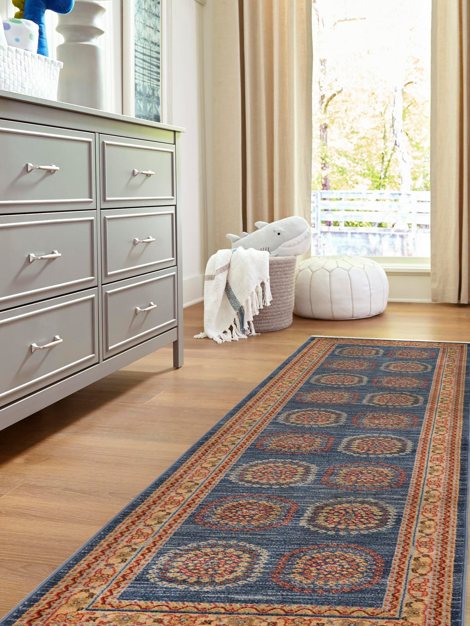 Washable Multicolor 2' x 6' Timeless Runner Area Rug Easy to Clean Stain Resistant & Durable
