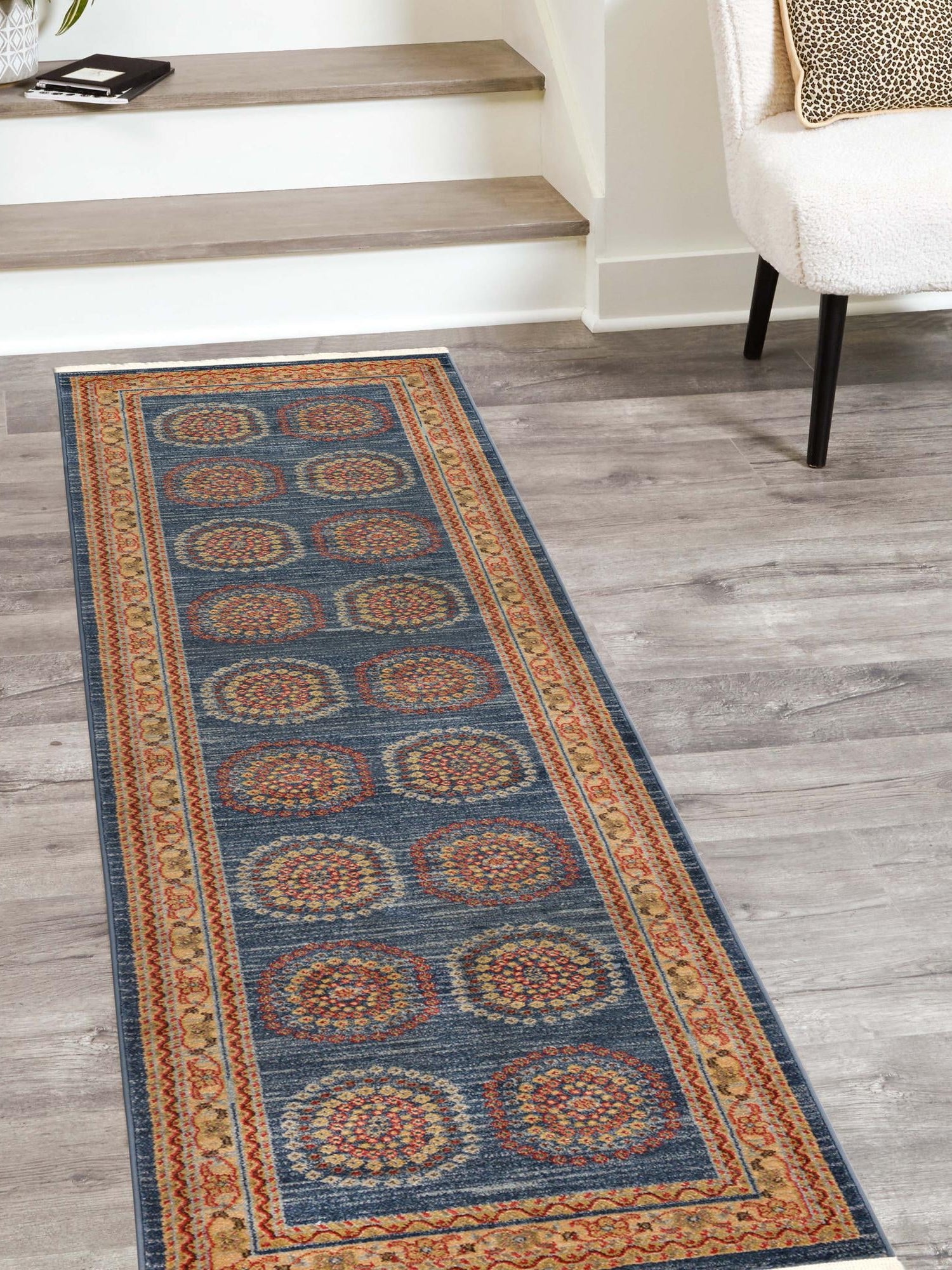 Washable Navy Blue 2' 7 x 12' Timeless Runner Area Rug Easy to Clean Stain Resistant & Durable