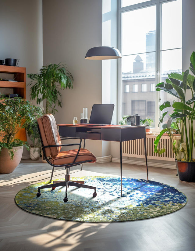Blue 4' 1 x 4' 1 Estrella Round Area Rug 100% Polypropylene Non-Shedding Stain Resistant Carpet Colorful Modern Abstract Design Easy Clean for Home Decor