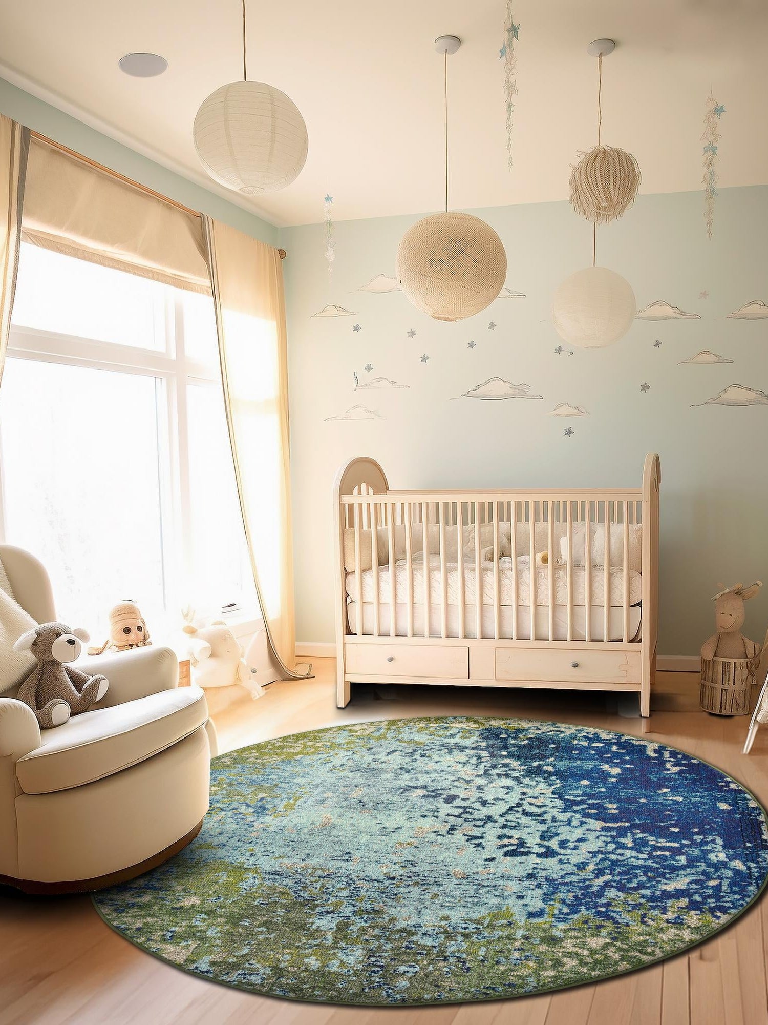 Washable Blue 5' x 5' Timeless Round Area Rug Easy to Clean Stain Resistant & Durable