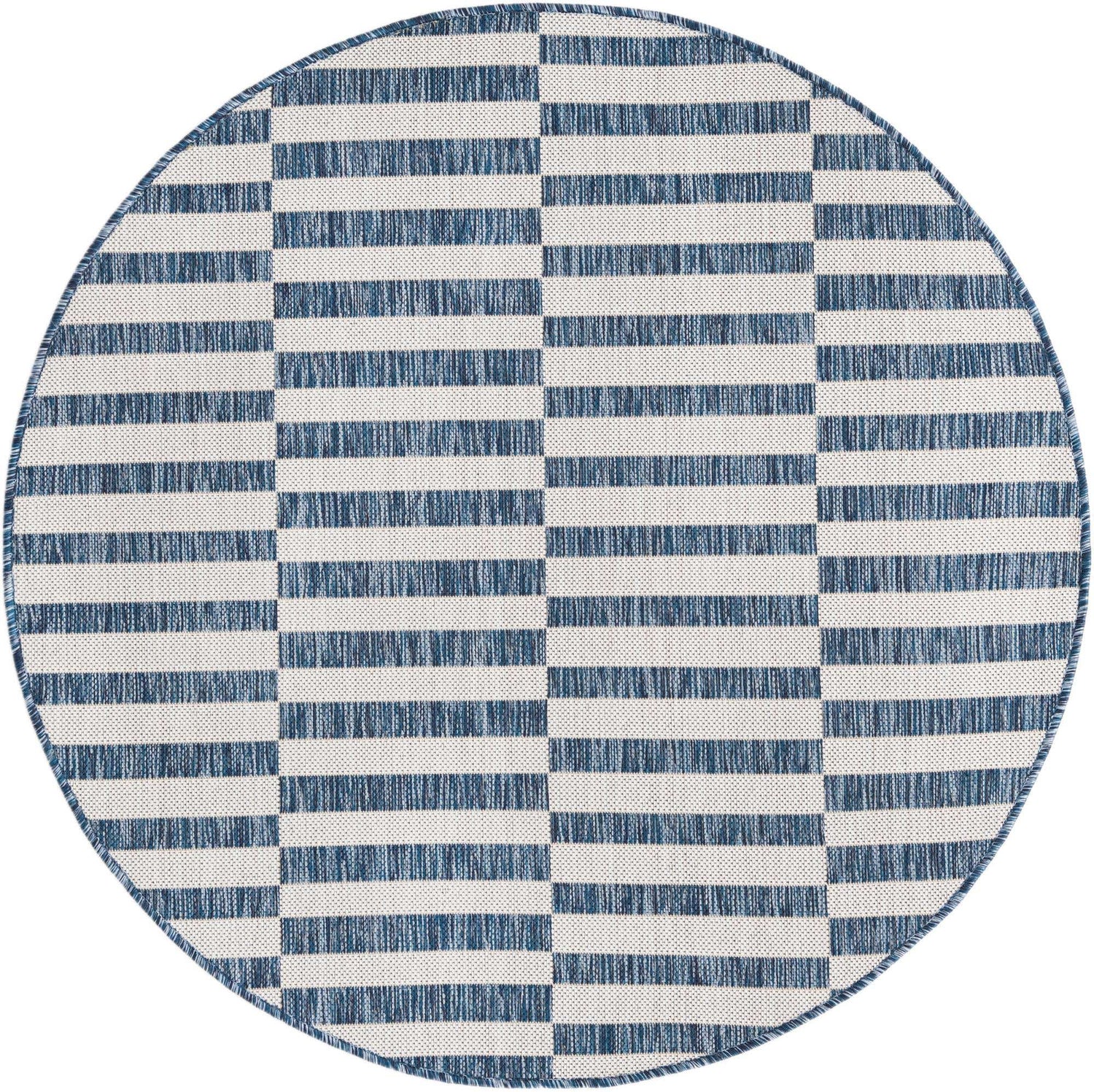 Blue 4' 1 x 4' 1 Outdoor Striped Round Area Rug Weather Res...