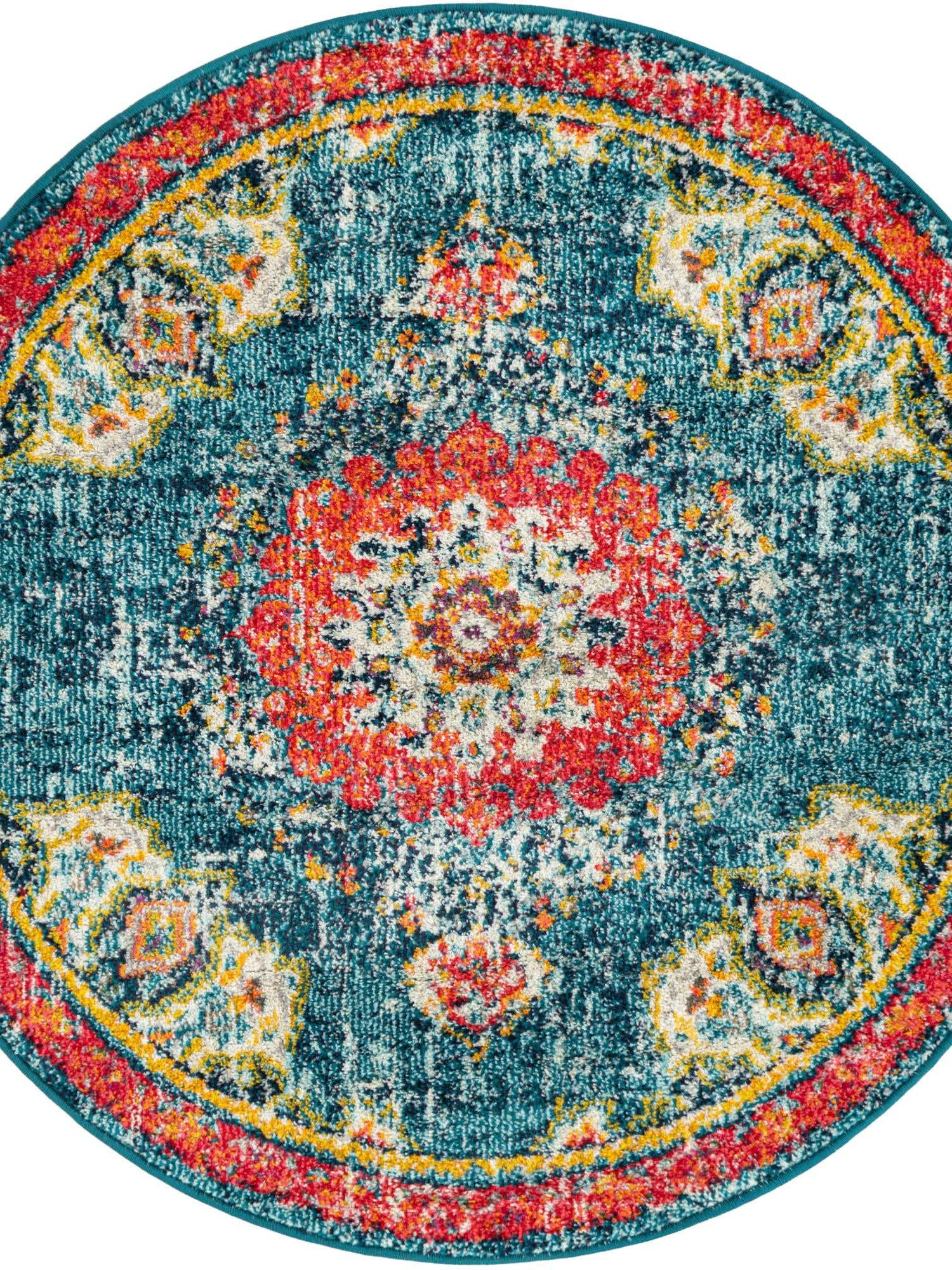 Washable Multicolor 5' x 5' Timeless Round Area Rug Easy to Clean Stain Resistant & Durable