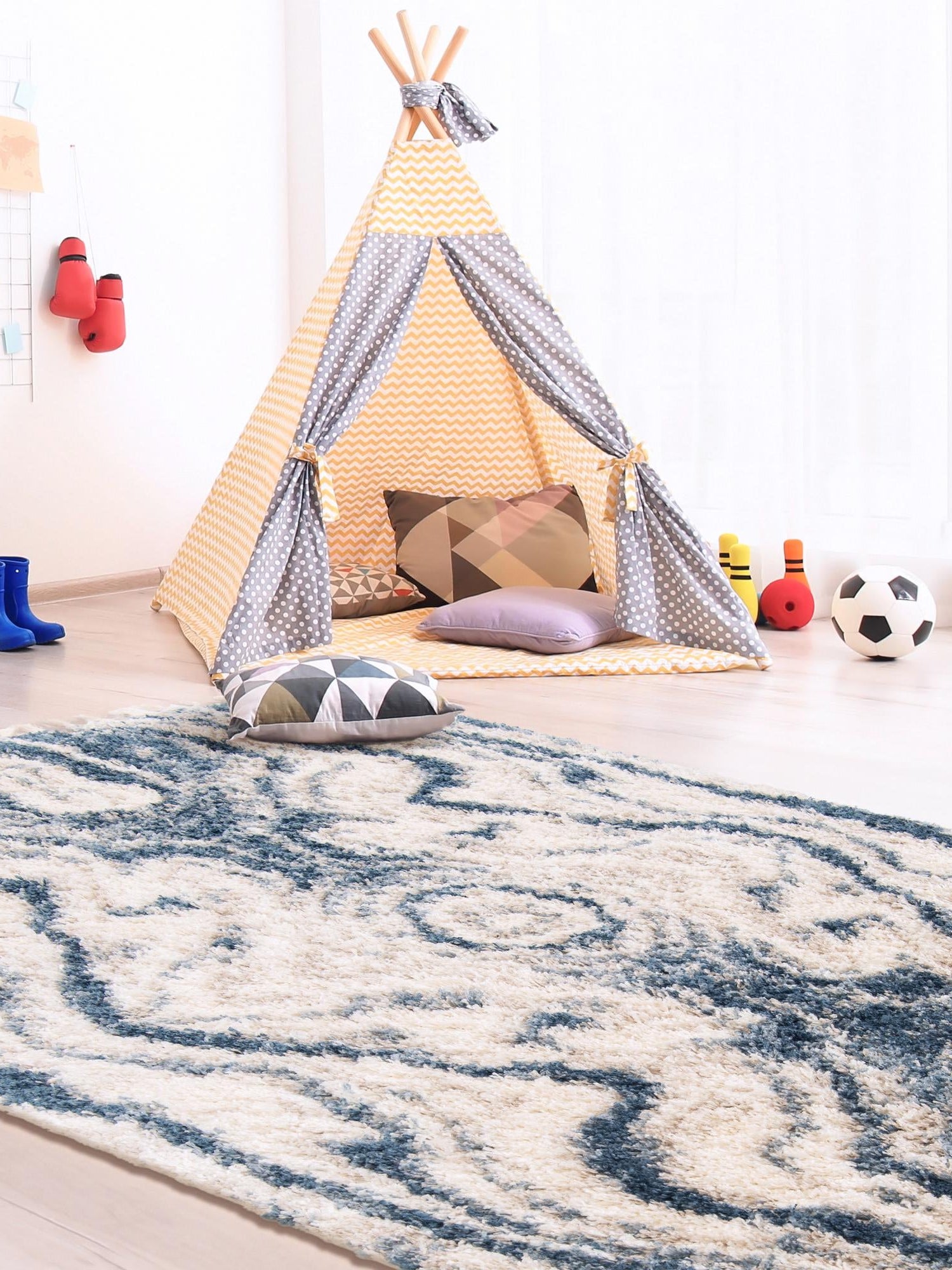 Blue 4' 1 x 6' 1 Hygge Shag Rectangle Area Rug Thick Soft Touch Fluffy & Plush Shaggy Pile 100% Polypropylene With Jute Backing Modern Carpet