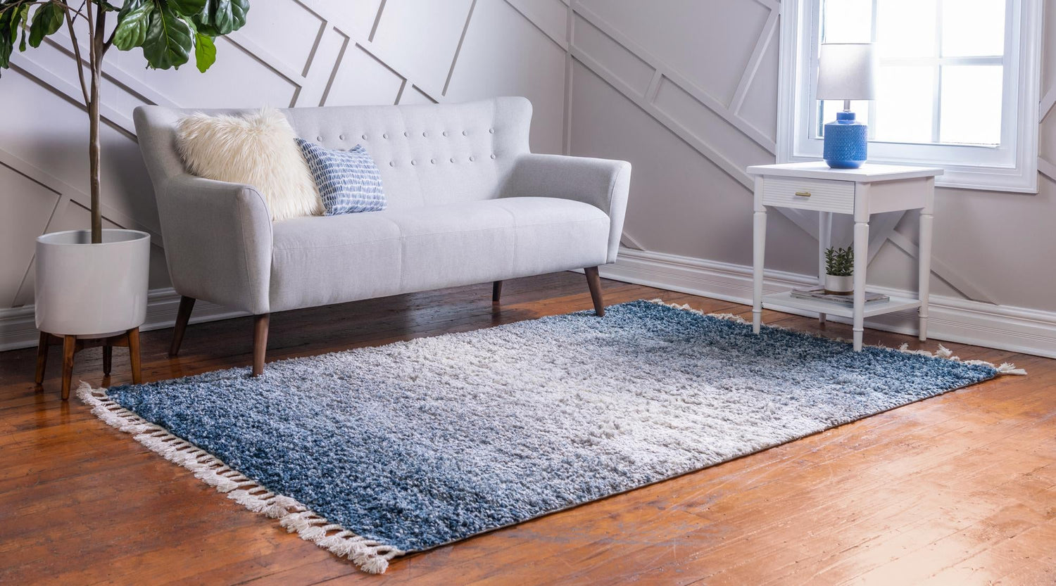Blue 4' 1 x 6' 1 Hygge Shag Rectangle Area Rug Thick Soft Touch Fluffy & Plush Shaggy Pile 100% Polypropylene With Jute Backing Modern Carpet