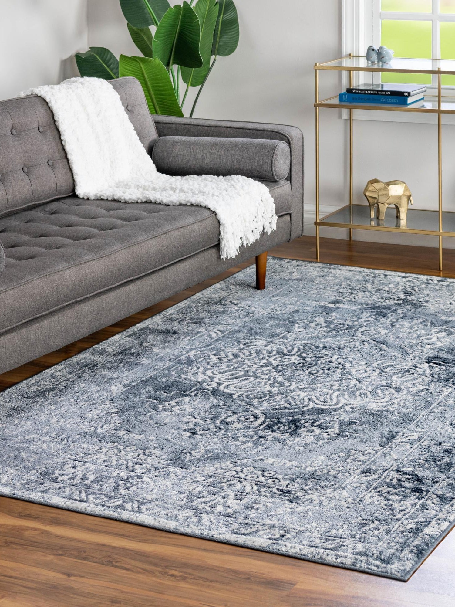 Washable Gray Blue 2' x 3' 1 Renaissance Rectangle Area Rug Easy to Clean Stain Resistant & Durable