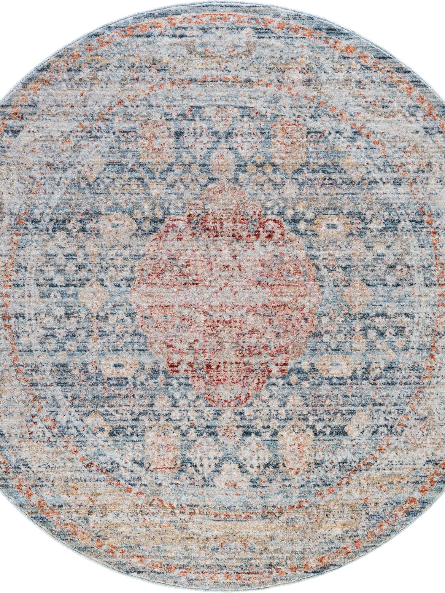 Washable Blue 5' x 5' Timeless Round Area Rug Easy to Clean Stain Resistant & Durable