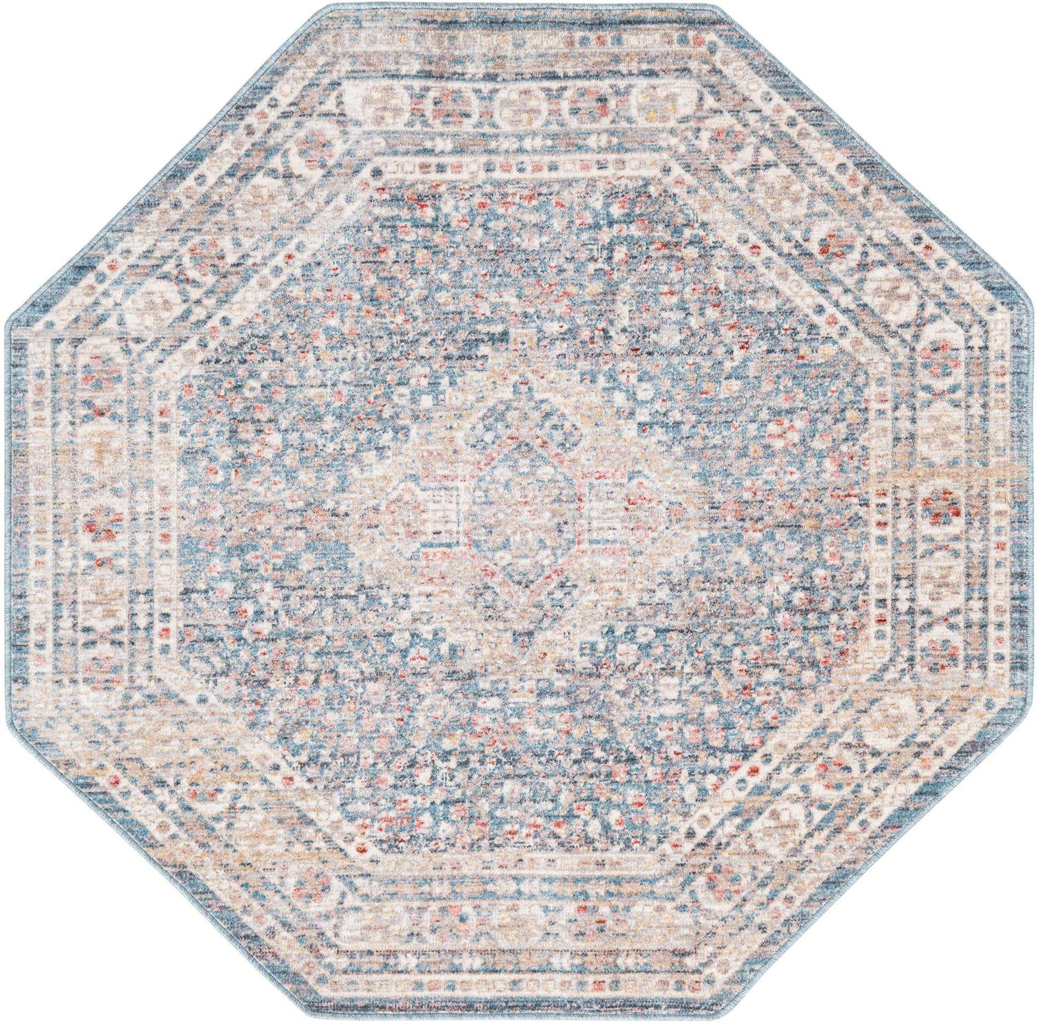 Blue 3' 11 x 3' 11 Noble Octagon Area Rug 100% Polyester Traditional Distressed Classic Contemporary Carpet for Home Decor