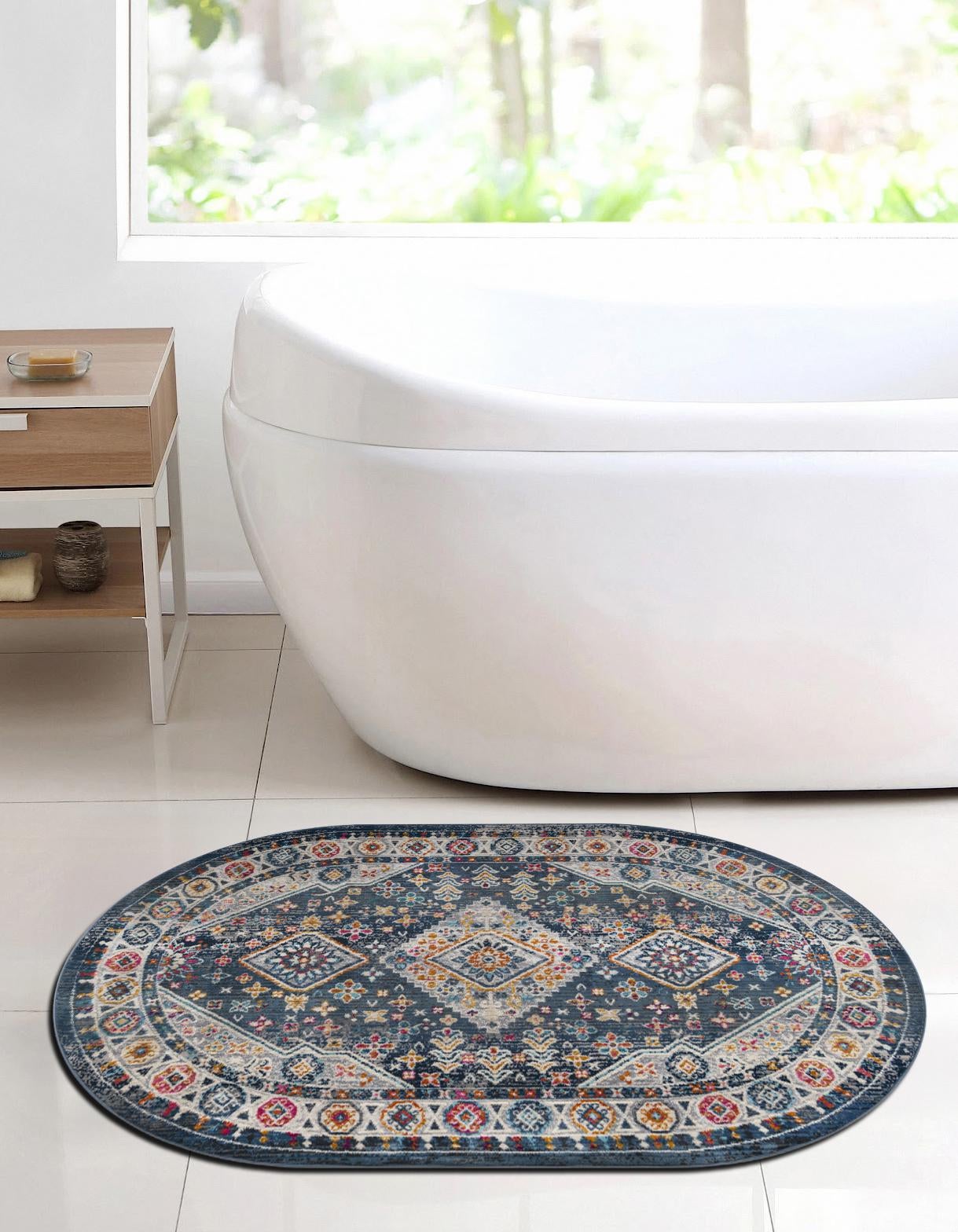 Washable Blue 2' x 3' 1 Timeless Oval Area Rug Easy to Clean Stain Resistant & Durable