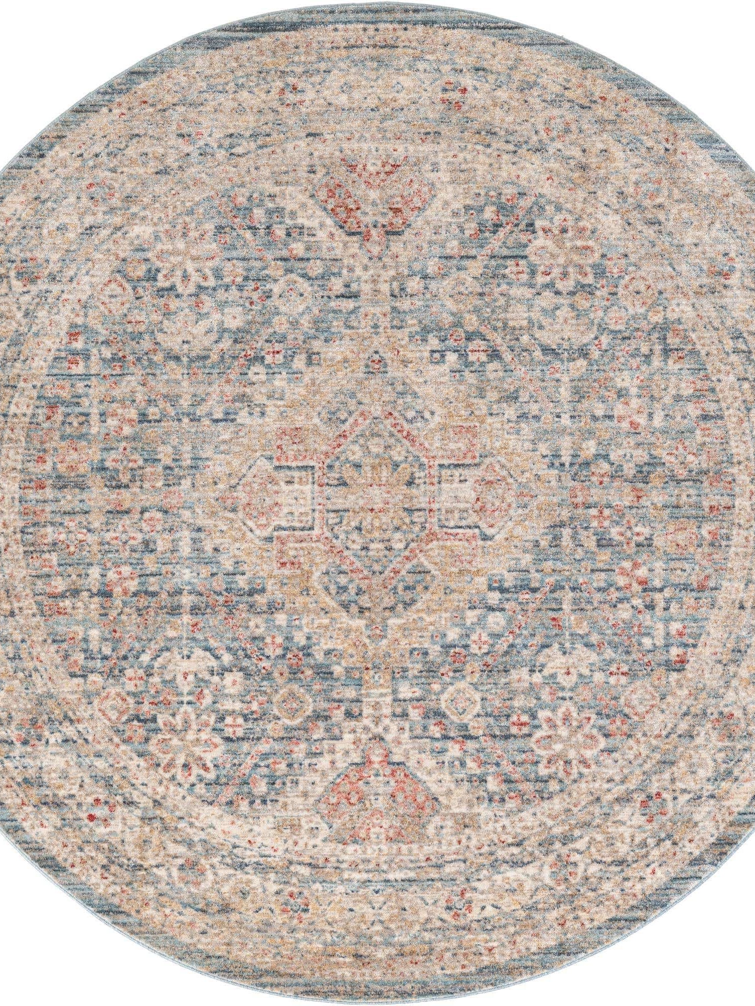 Blue 5' 1 x 5' 1 Noble Round Area Rug 100% Polyester Traditional Distressed Classic Contemporary Carpet for Home Decor