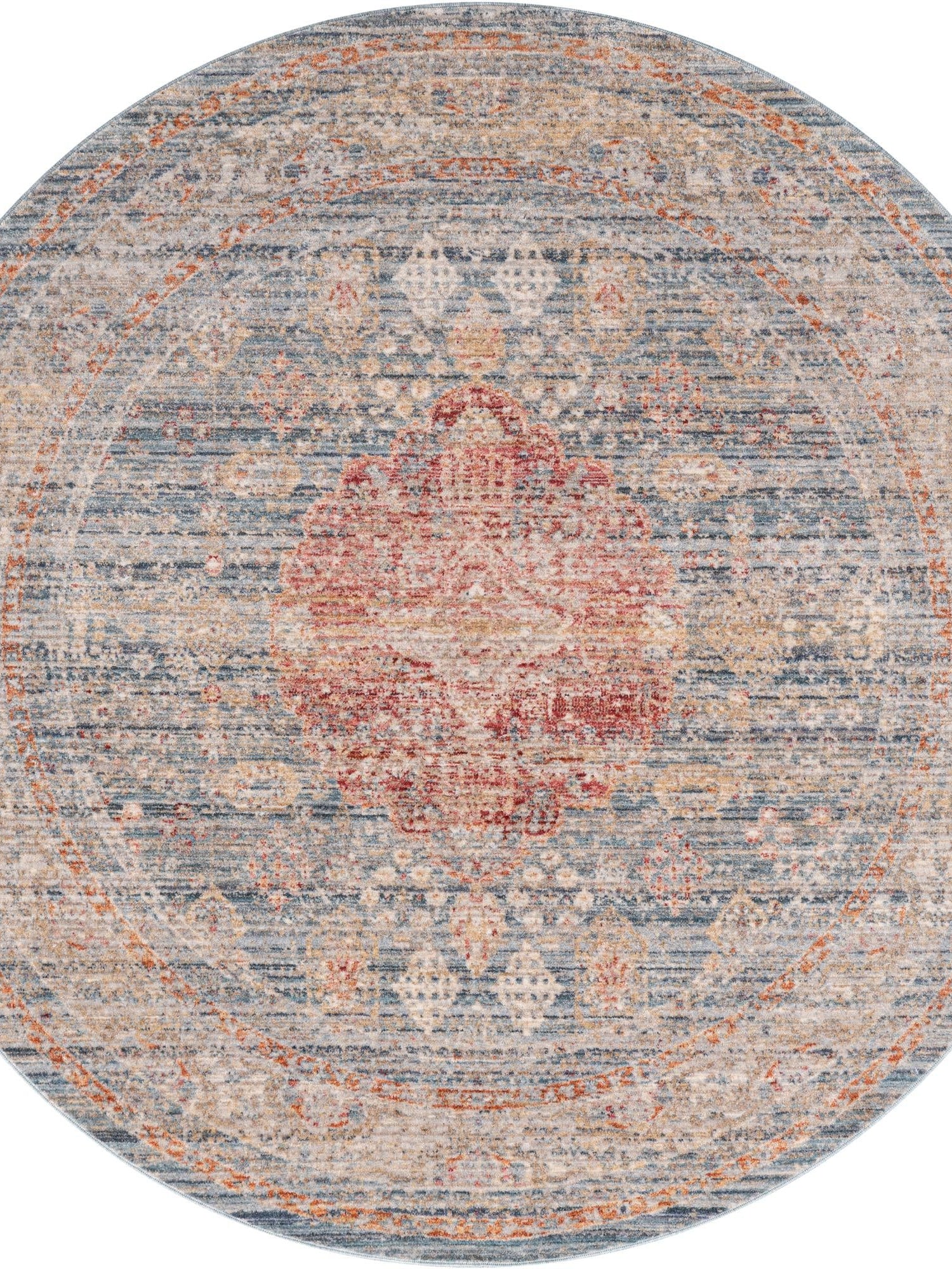 Blue 5' 1 x 5' 1 Noble Round Area Rug 100% Polyester Traditional Distressed Classic Contemporary Carpet for Home Decor
