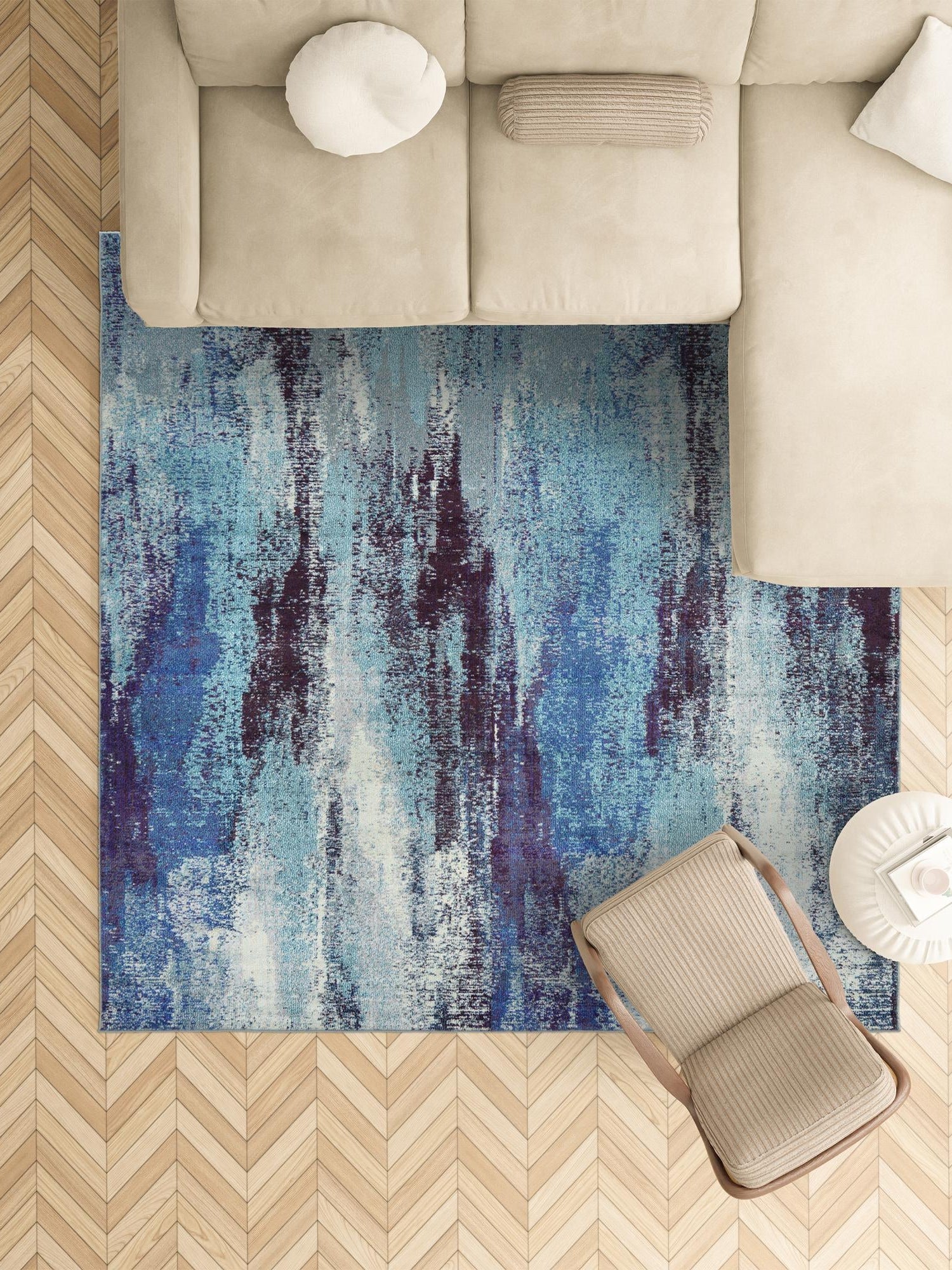 Blue 5' 3 x 5' 3 Jardin Square Area Rug 100% Polypropylene With Cotton Backing Colorful & Vivid Modern Carpet for Home Decor