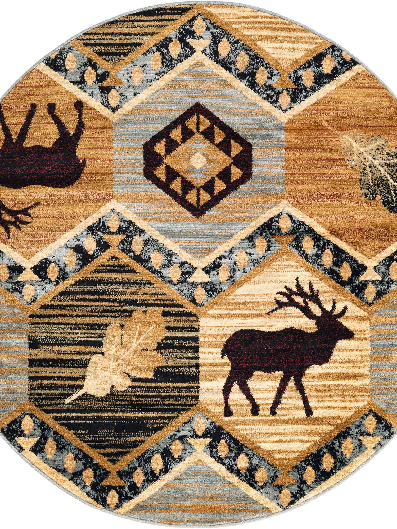 Washable Multicolor 5' x 5' Timeless Round Area Rug Easy to Clean Stain Resistant & Durable