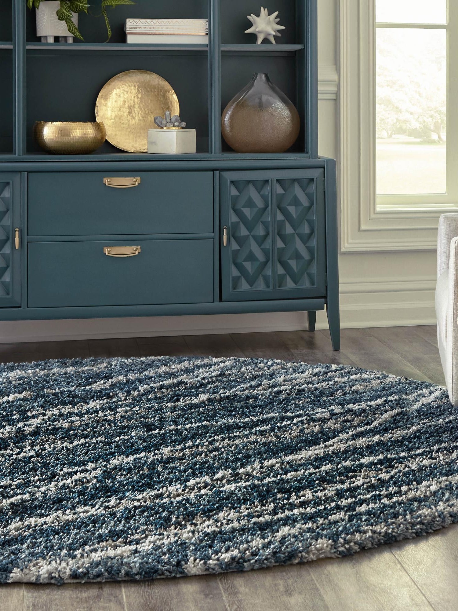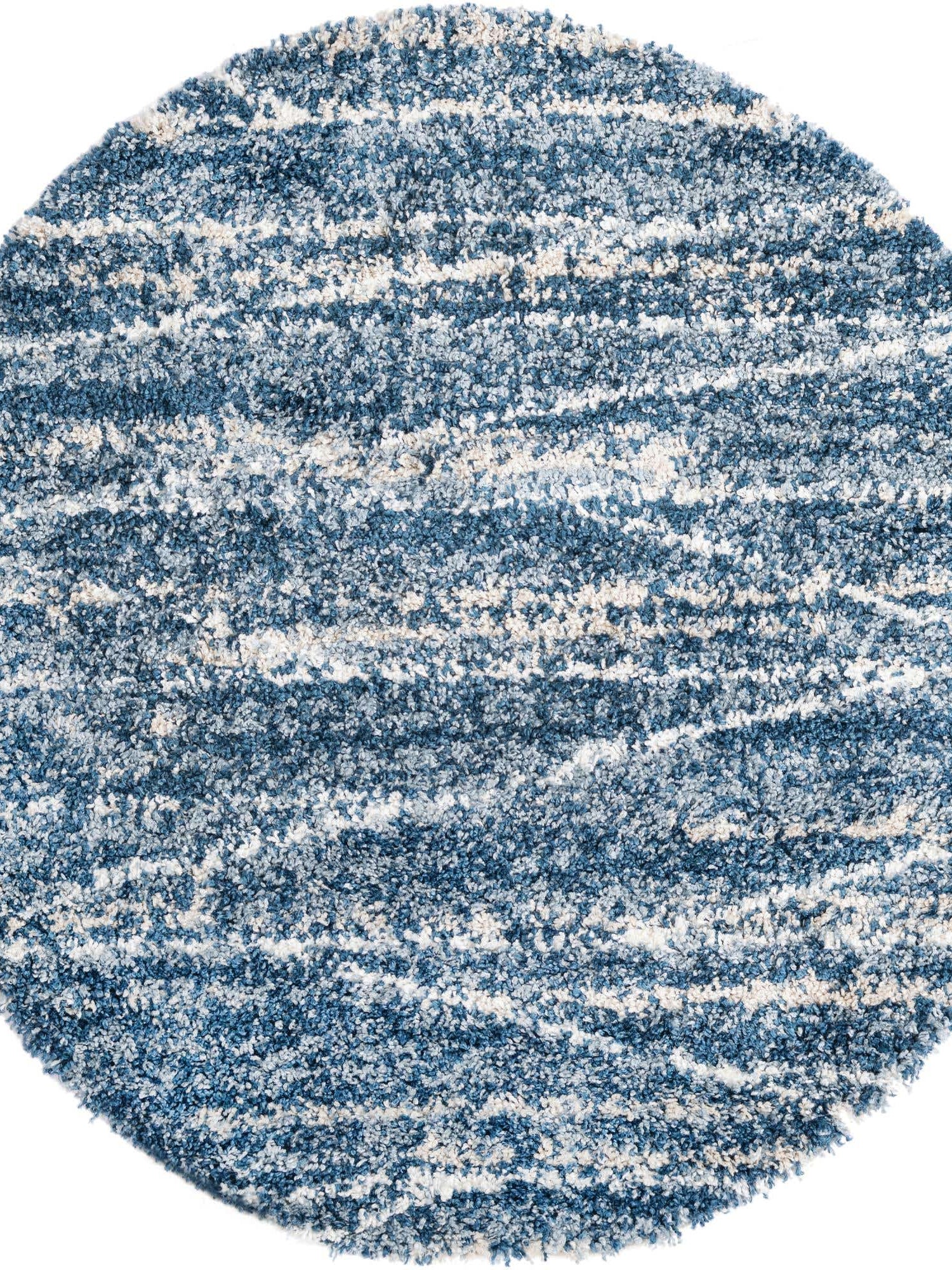 Blue 5' 3 x 5' 3 Serenity Shag Round Area Rug Thick Soft To...