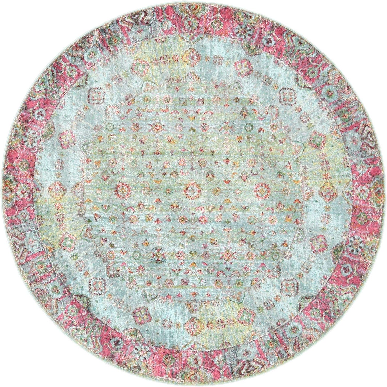 Washable Multicolor 5' x 5' Timeless Round Area Rug Easy to Clean Stain Resistant & Durable
