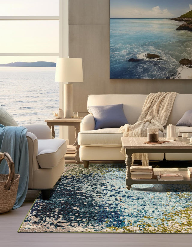 Blue 5' x 5' Estrella Square Area Rug 100% Polypropylene Non-Shedding Stain Resistant Carpet Colorful Modern Abstract Design Easy Clean for Home Decor