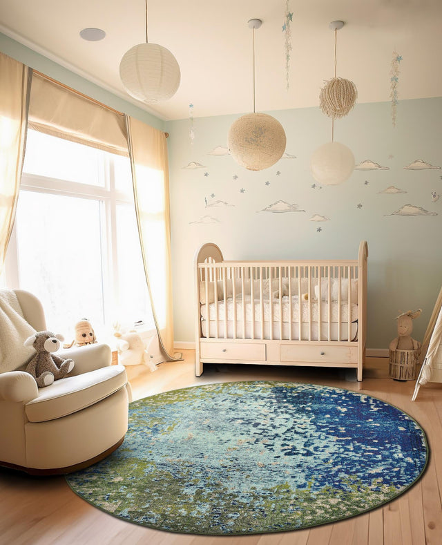Blue 5' x 5' Estrella Round Area Rug 100% Polypropylene Non-Shedding Stain Resistant Carpet Colorful Modern Abstract Design Easy Clean for Home Decor