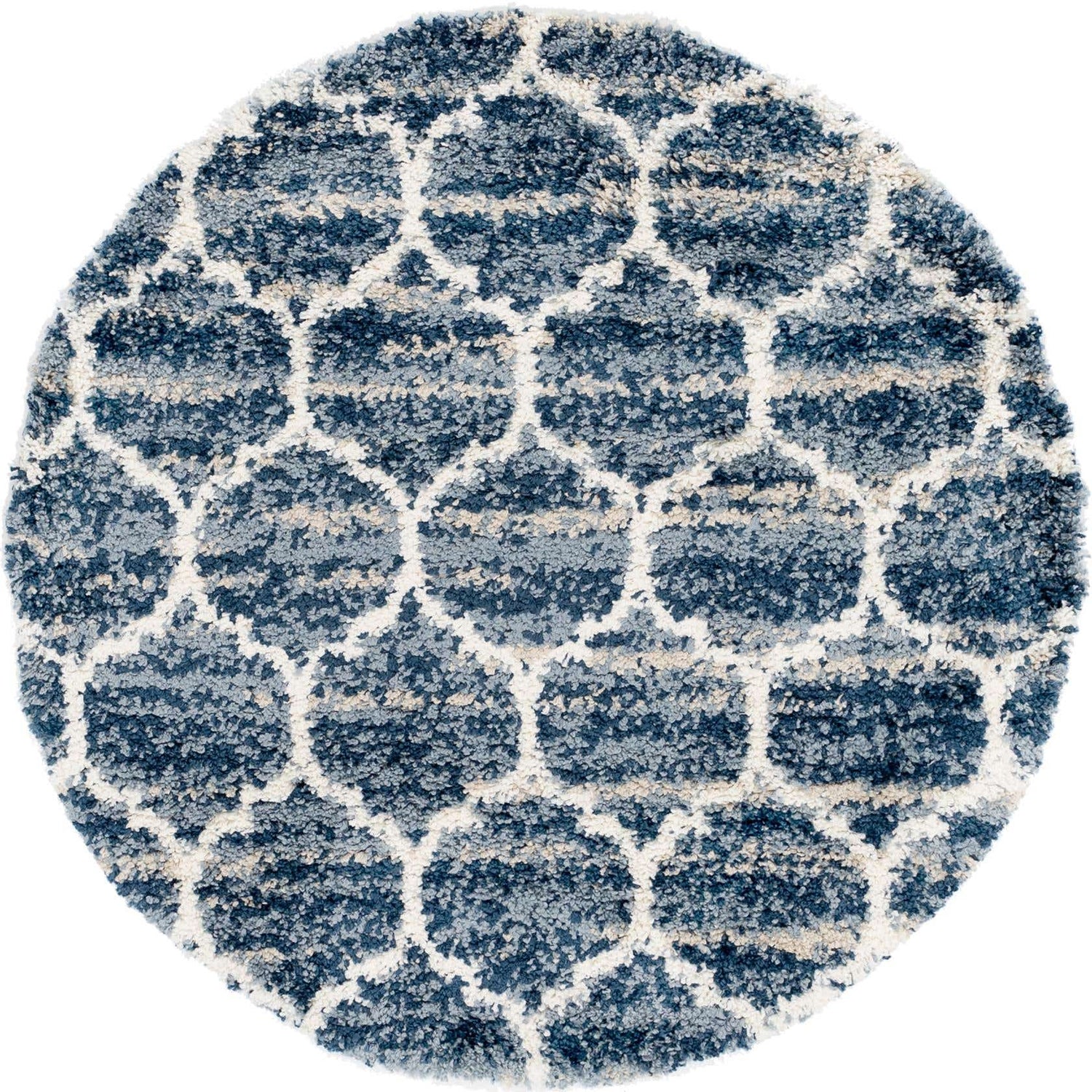 Blue 5' x 5' Hygge Shag Round Area Rug Thick Soft Touch Fluffy & Plush Shaggy Pile 100% Polypropylene With Jute Backing Modern Carpet