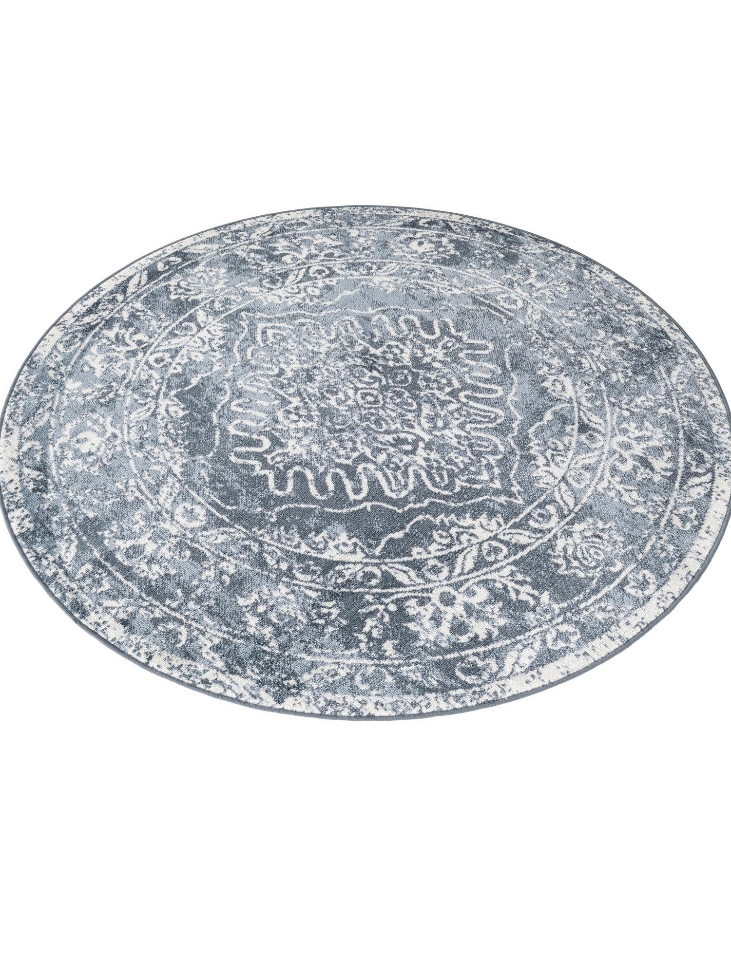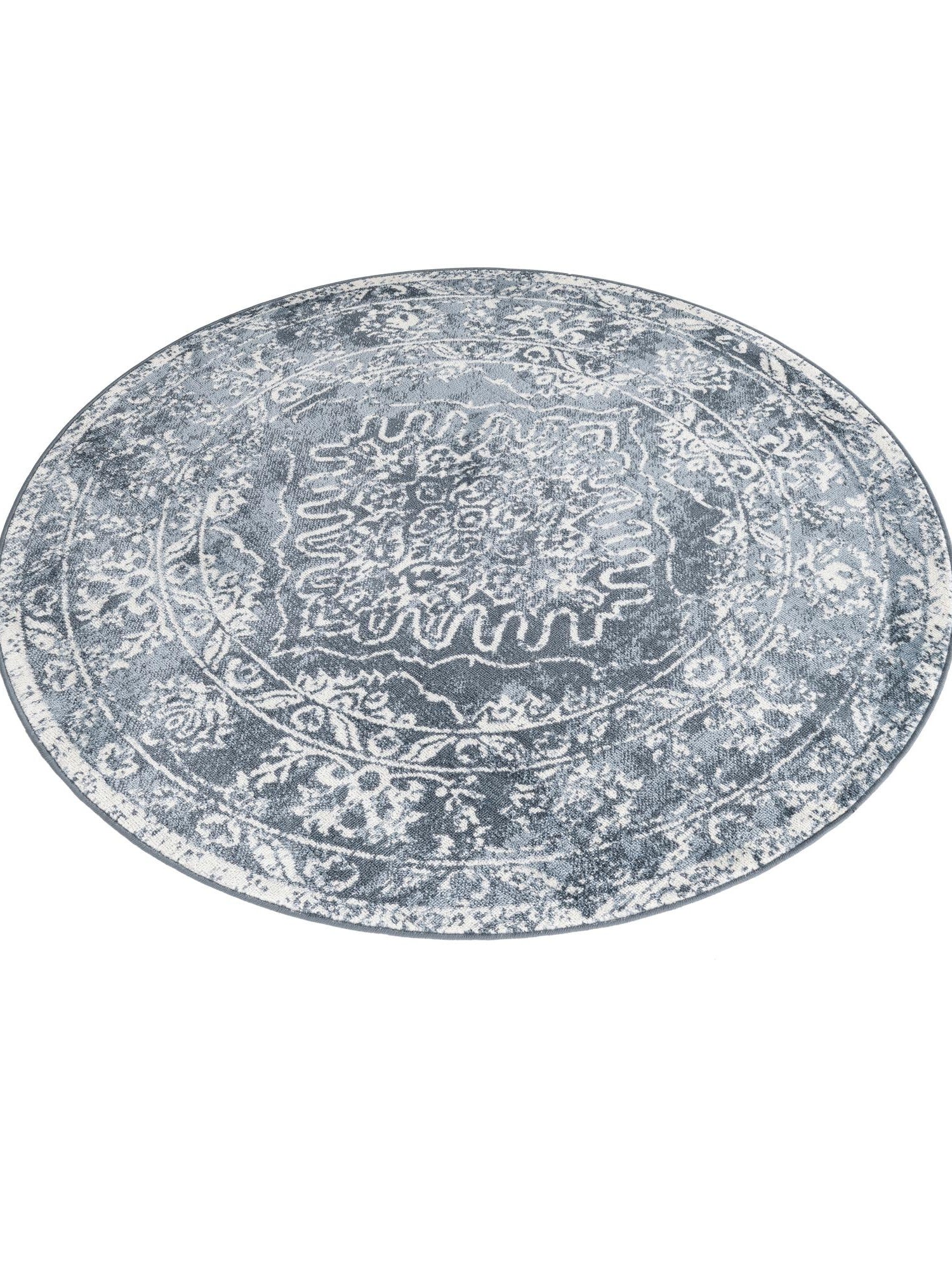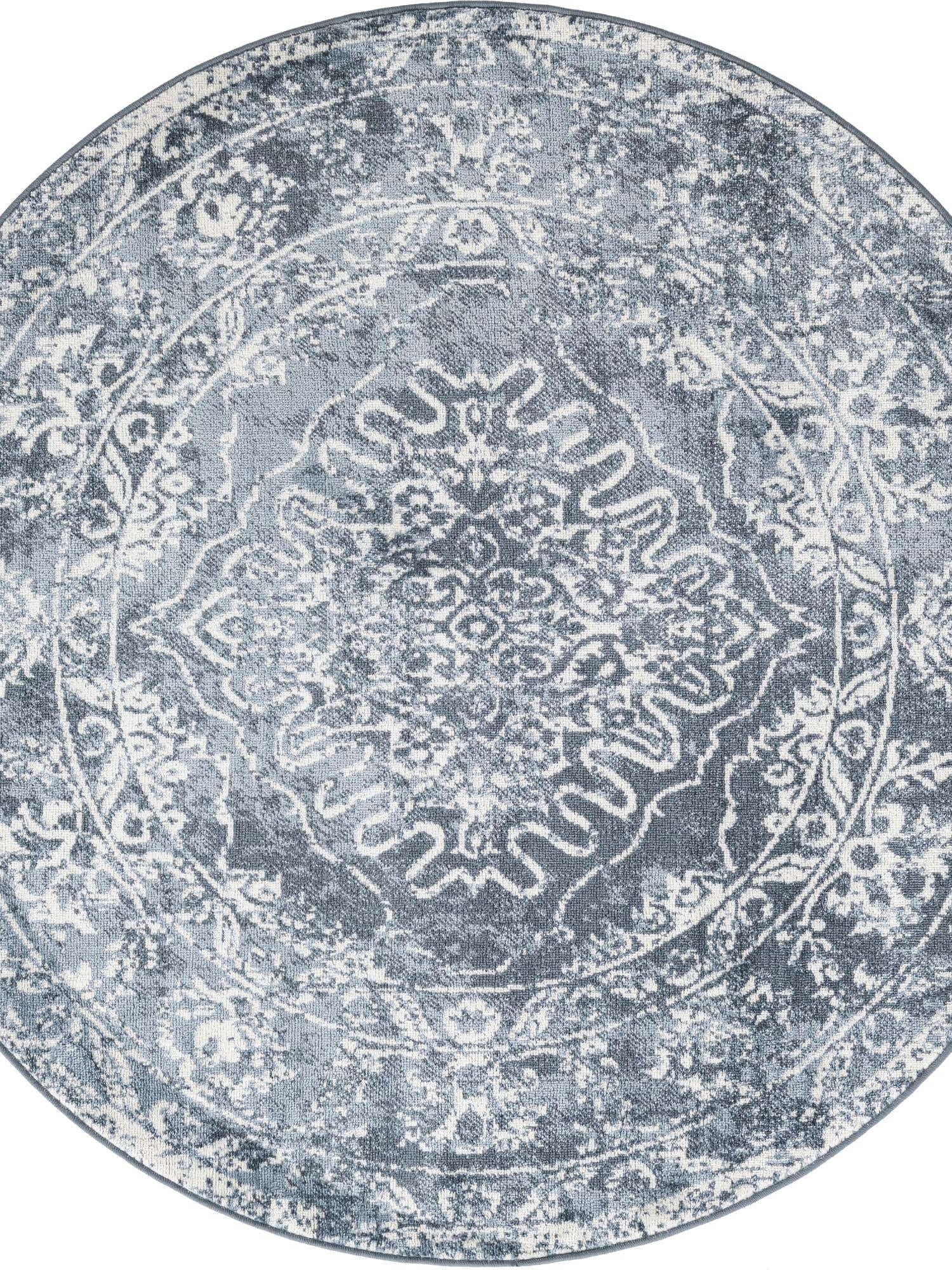 Washable Gray 2' x 2' Timeless Round Area Rug Easy to Clean Stain Resistant & Durable