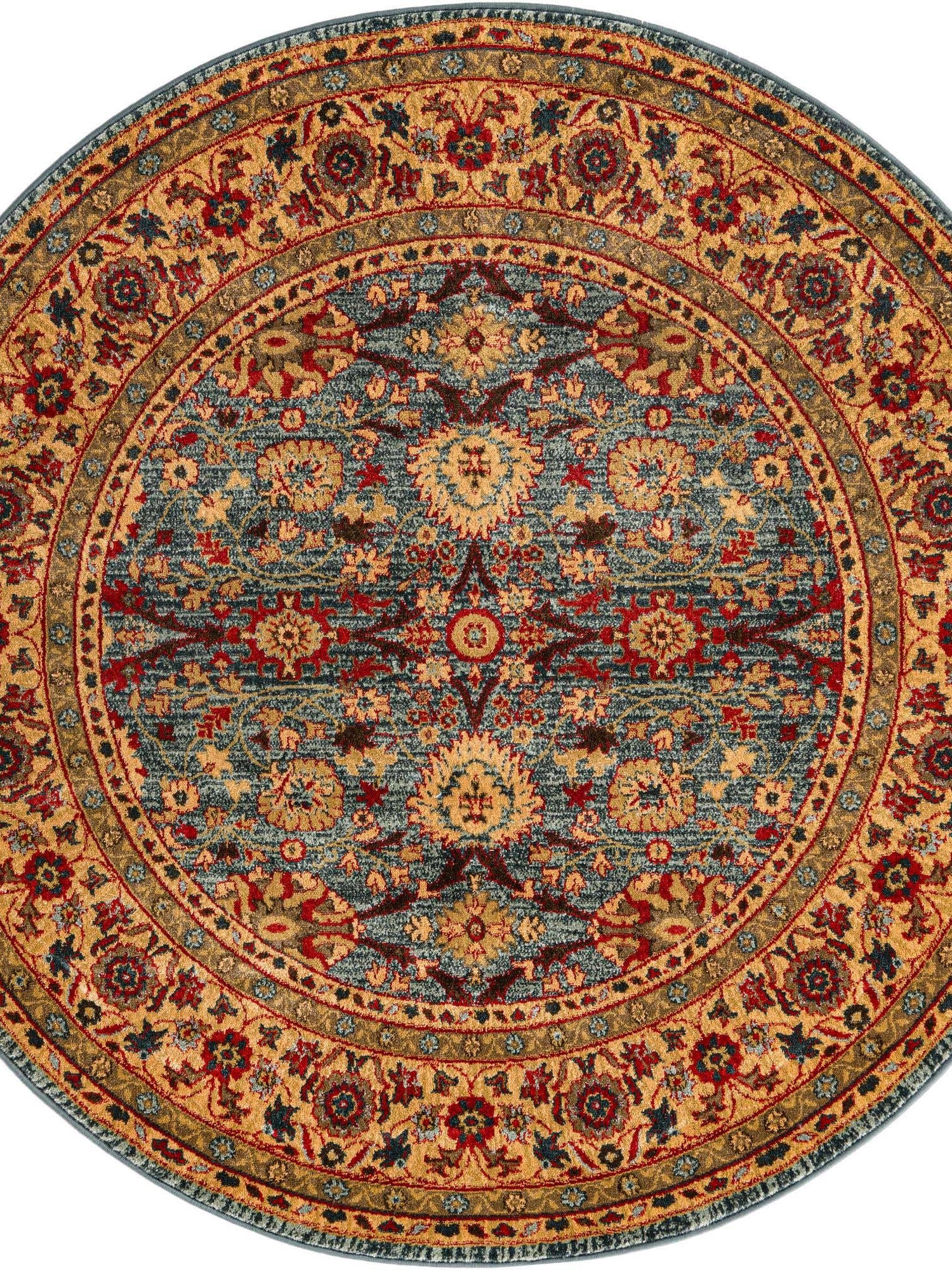 Washable Blue 5' x 5' Timeless Round Area Rug Easy to Clean Stain Resistant & Durable