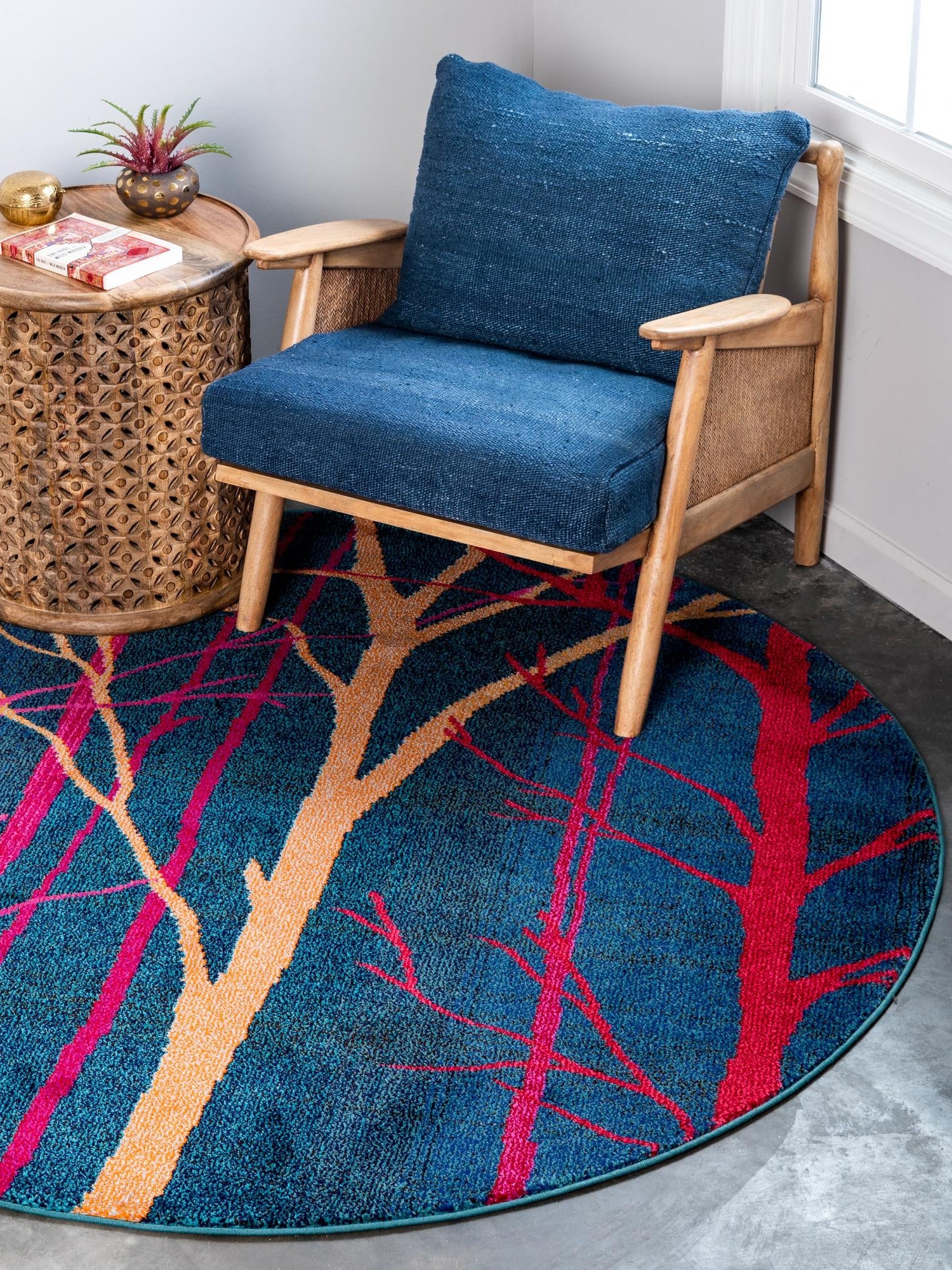 Blue 6' 1 x 6' 1 Estrella Round Area Rug 100% Polypropylene Non-Shedding Stain Resistant Carpet Colorful Modern Abstract Design Easy Clean for Home Decor