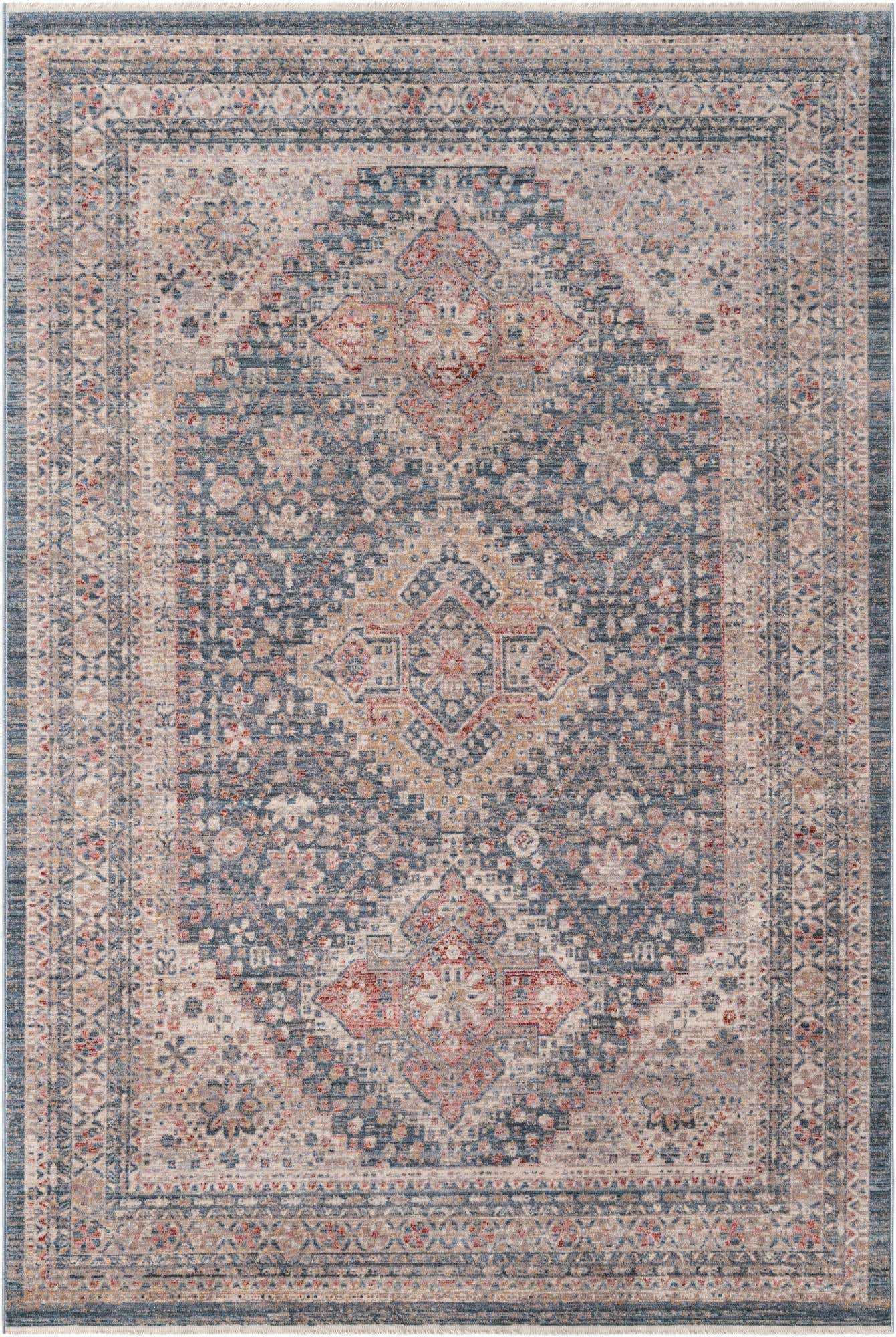 Blue 6' 1 x 9' Noble Rectangle Area Rug 100% Polyester Traditional Distressed Classic Contemporary Carpet for Home Decor