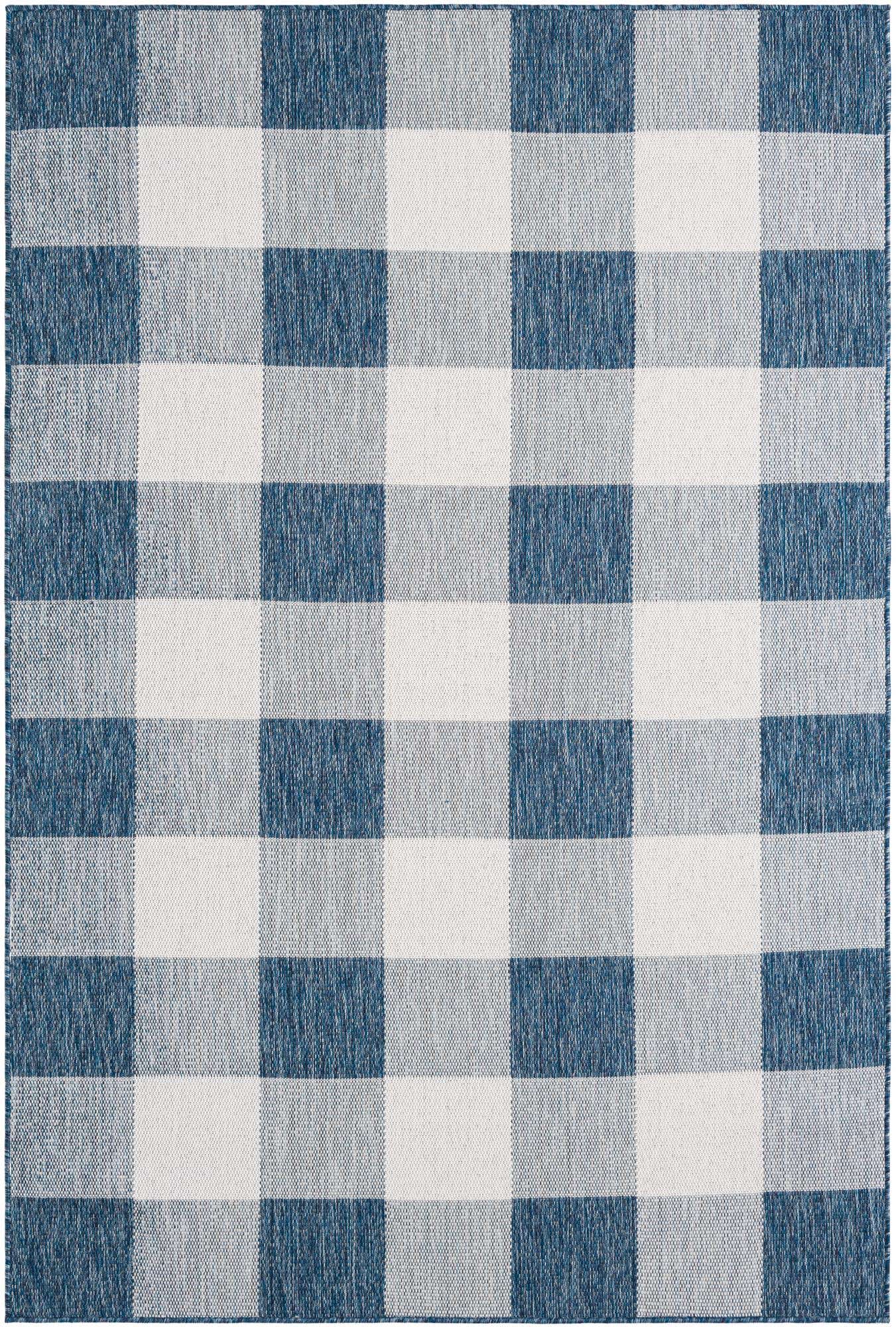 Blue 6' 1 x 9' Outdoor Checkered Rectangle Area Rug Weather...