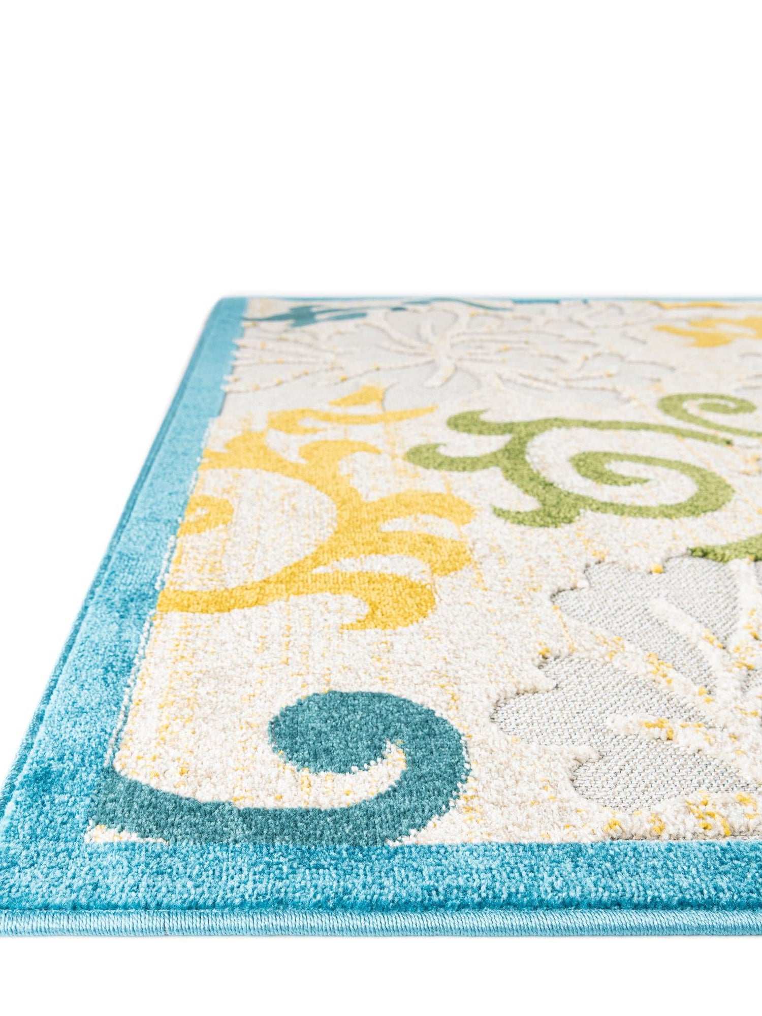 Blue 6' x 9' Outdoor Botanical Rectangle Area Rug Weather Resistant for Patio, Deck, Terrace, Balcony, Porch