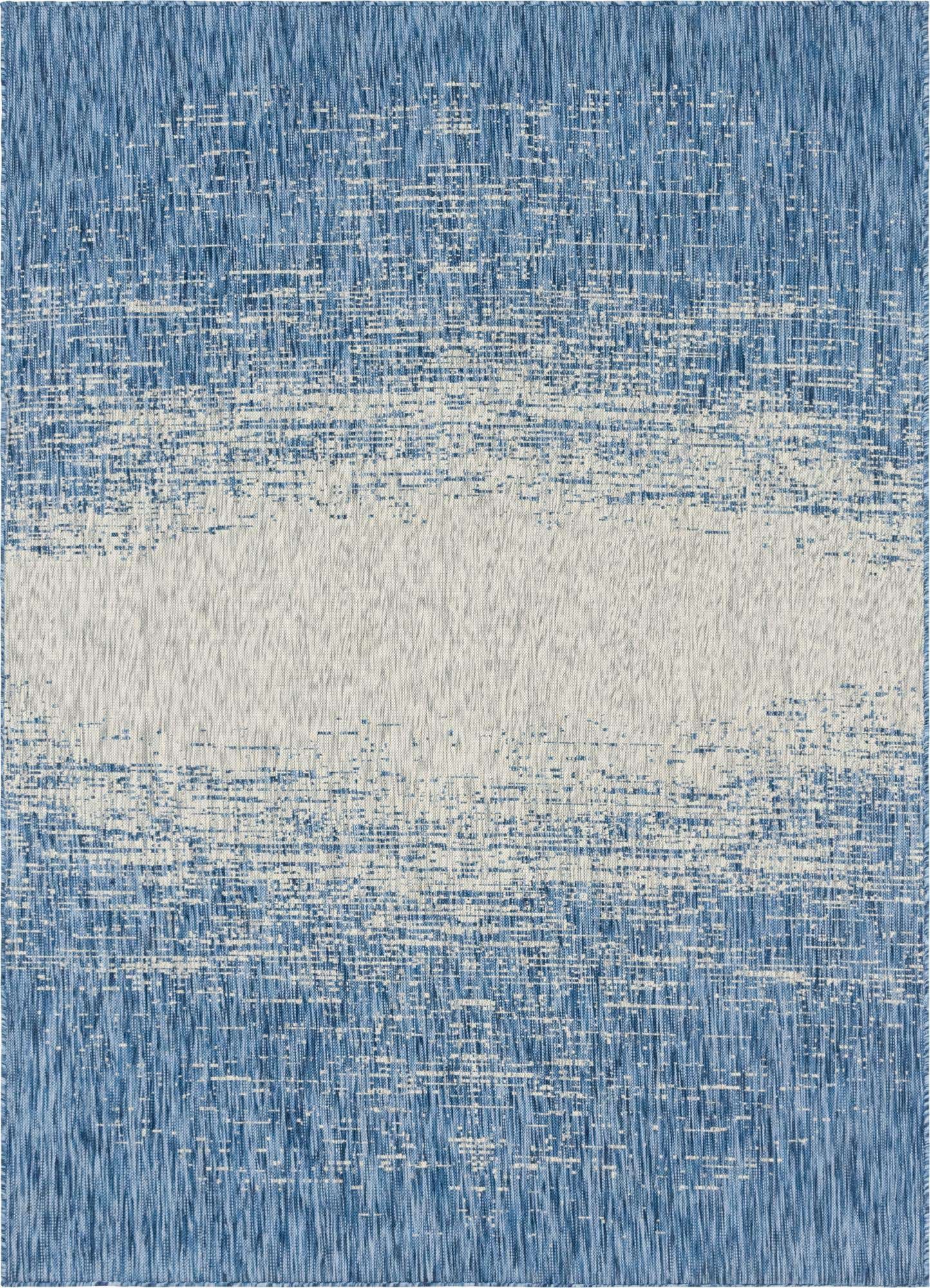 Blue 7' 1 x 10' Outdoor Modern Rectangle Area Rug Weather R...
