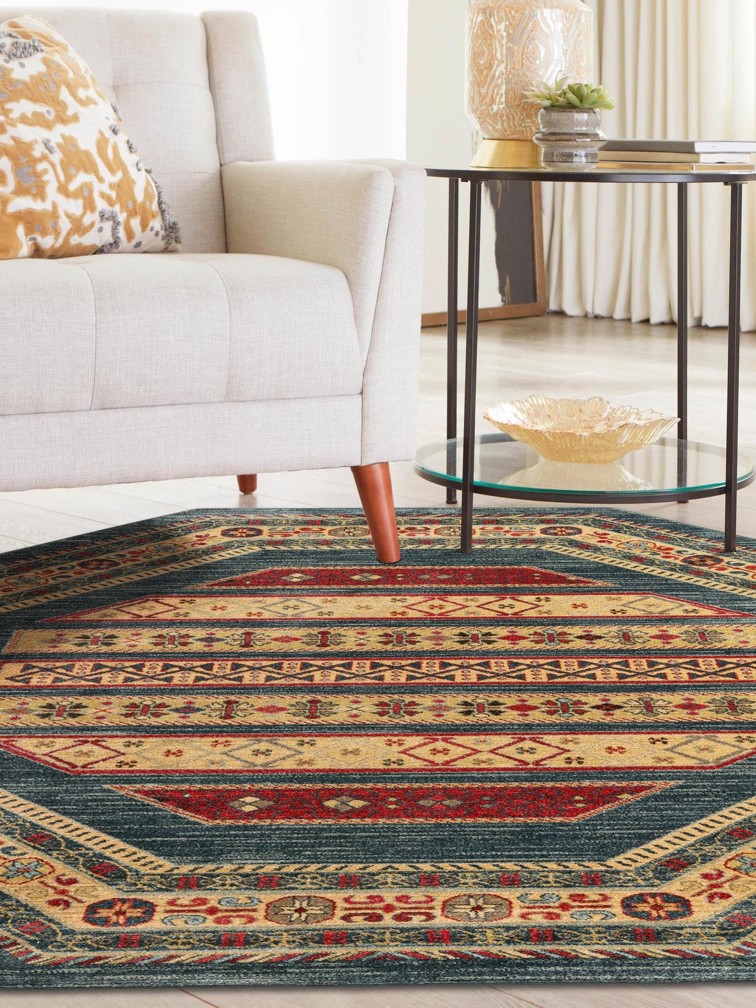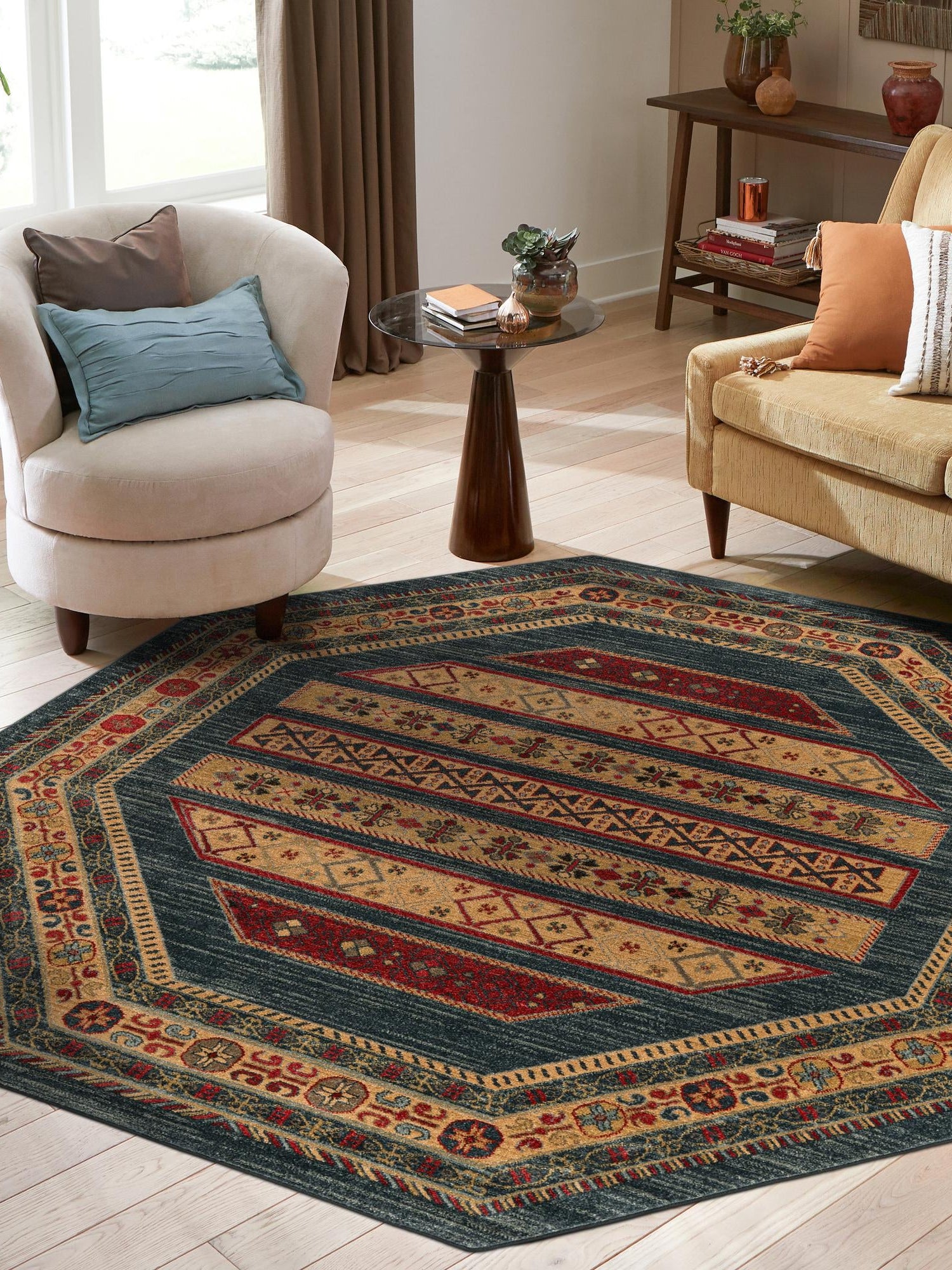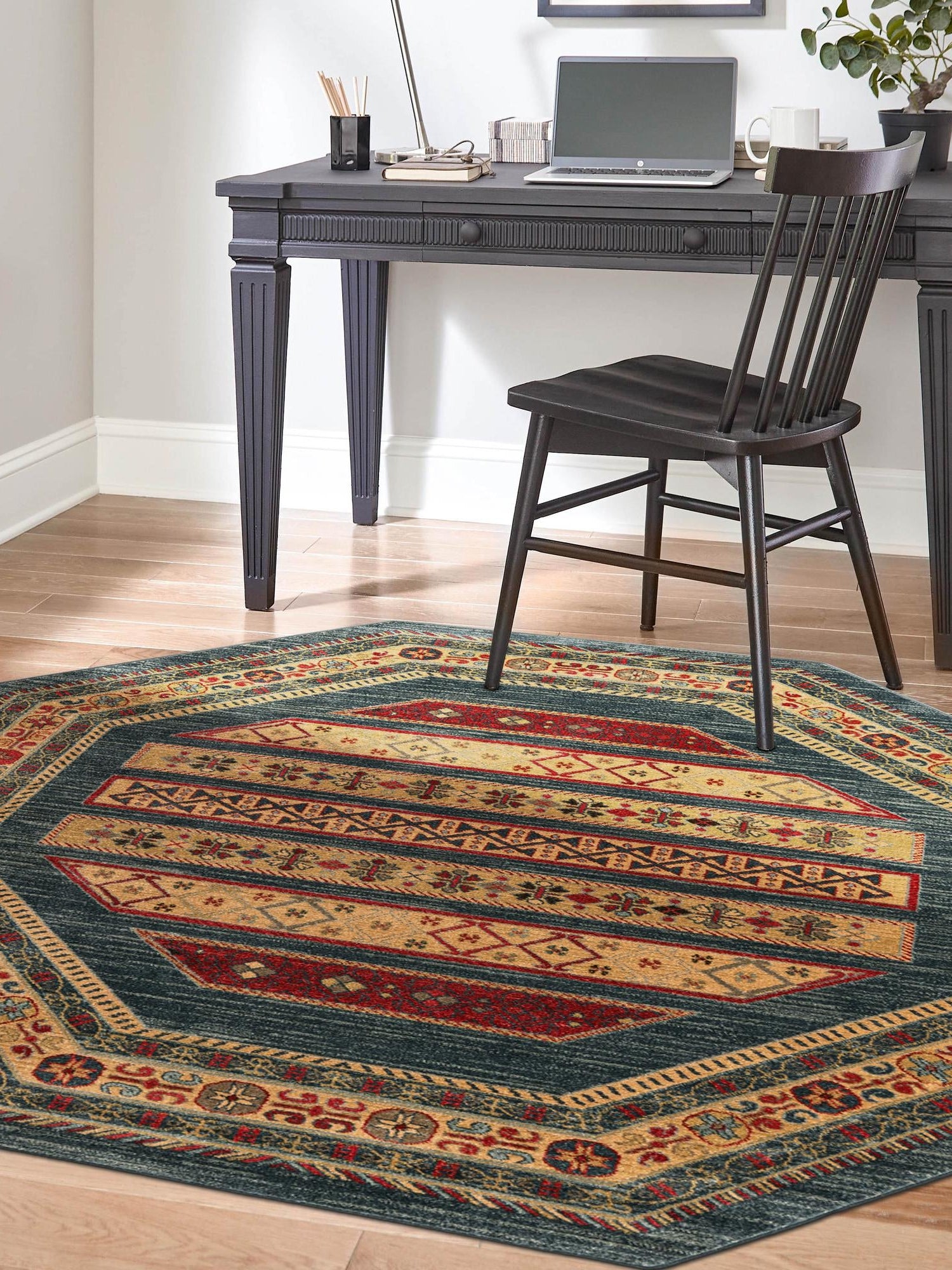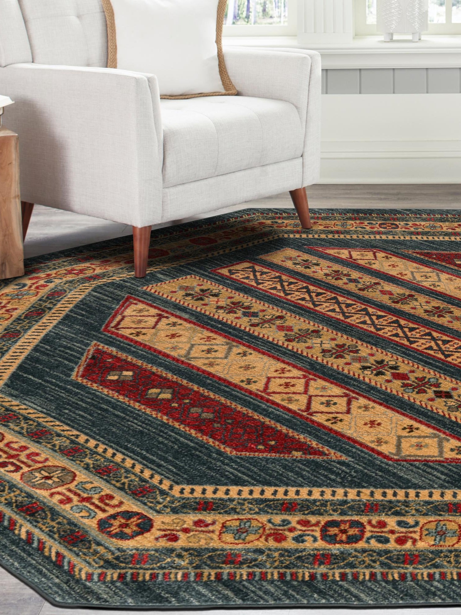Blue 7' 1 x 7' 1 Fars Octagon Area Rug 100% Polypropylene Unique Traditional Carpet for Classical Living, Dining Room & Office Spaces