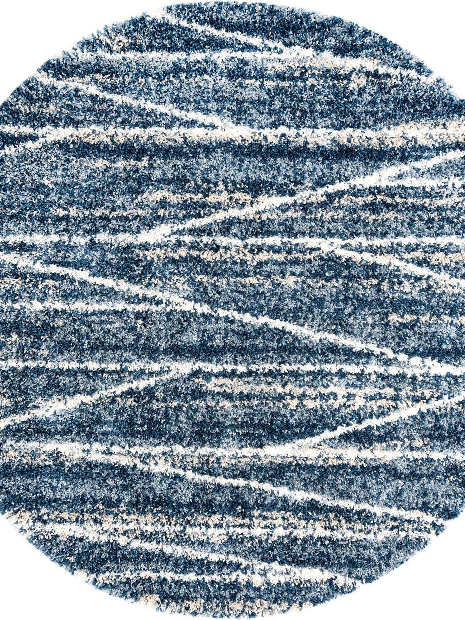 Blue 7' x 7' Serenity Shag Round Area Rug Thick Soft Touch ...