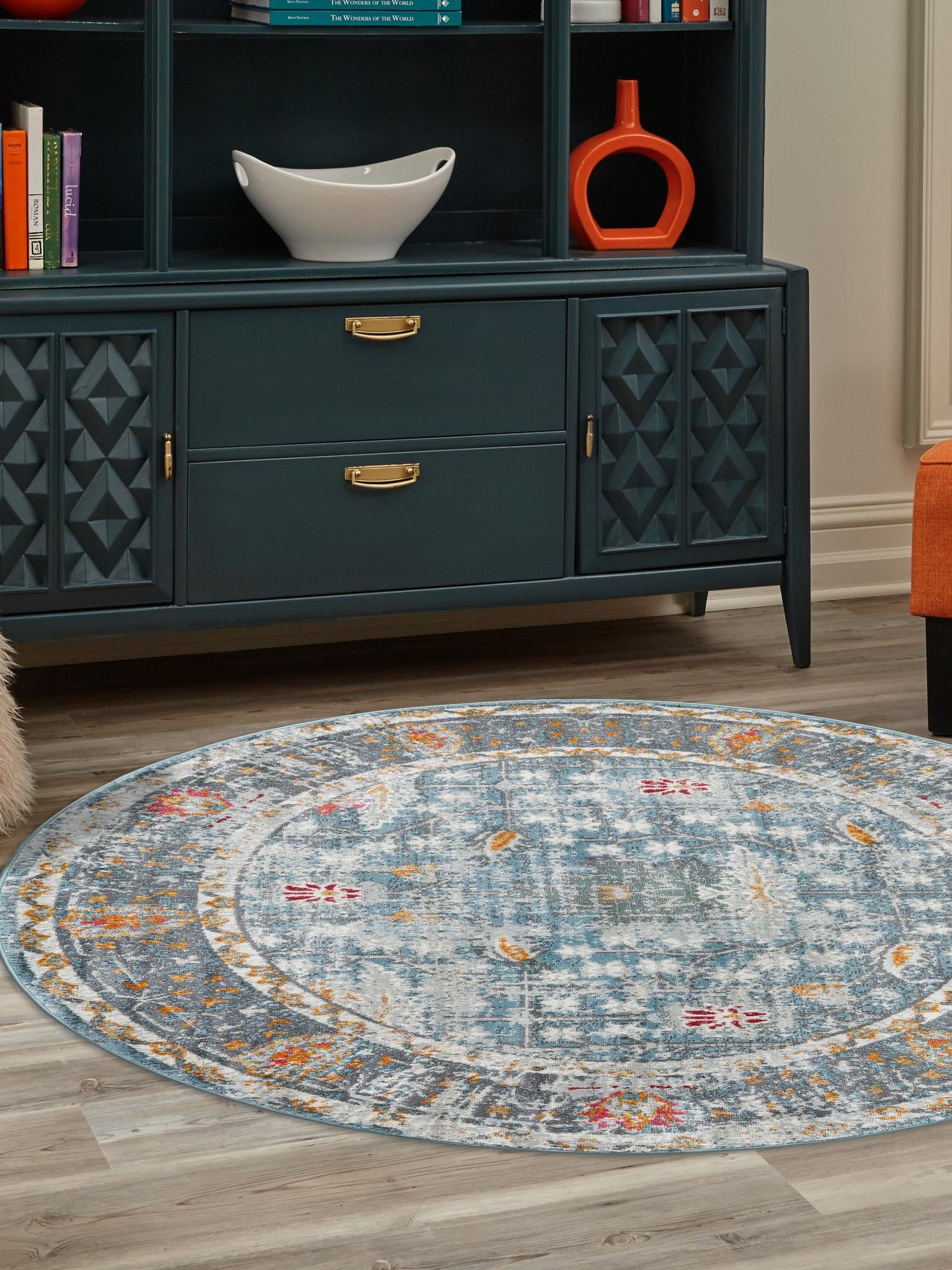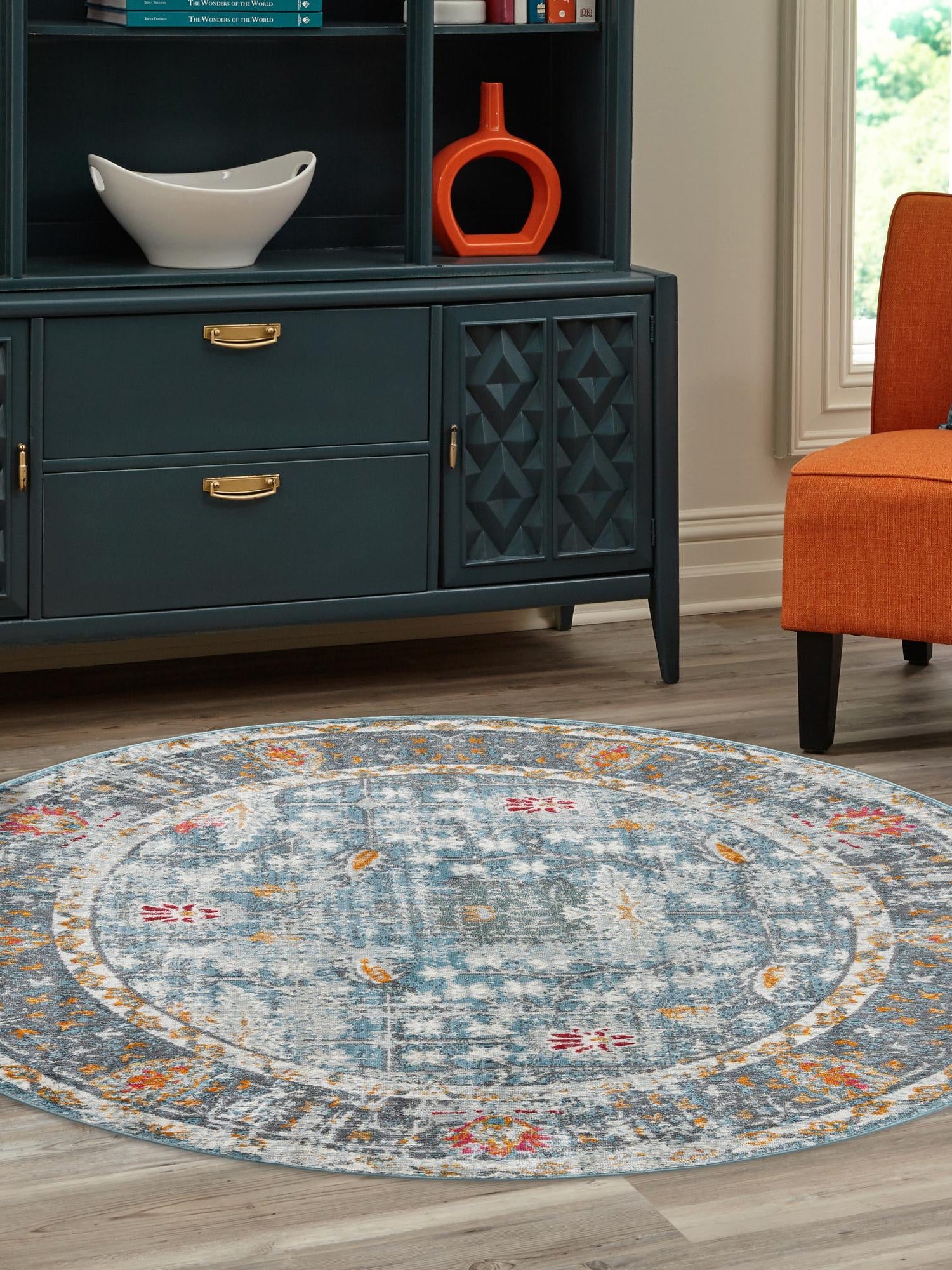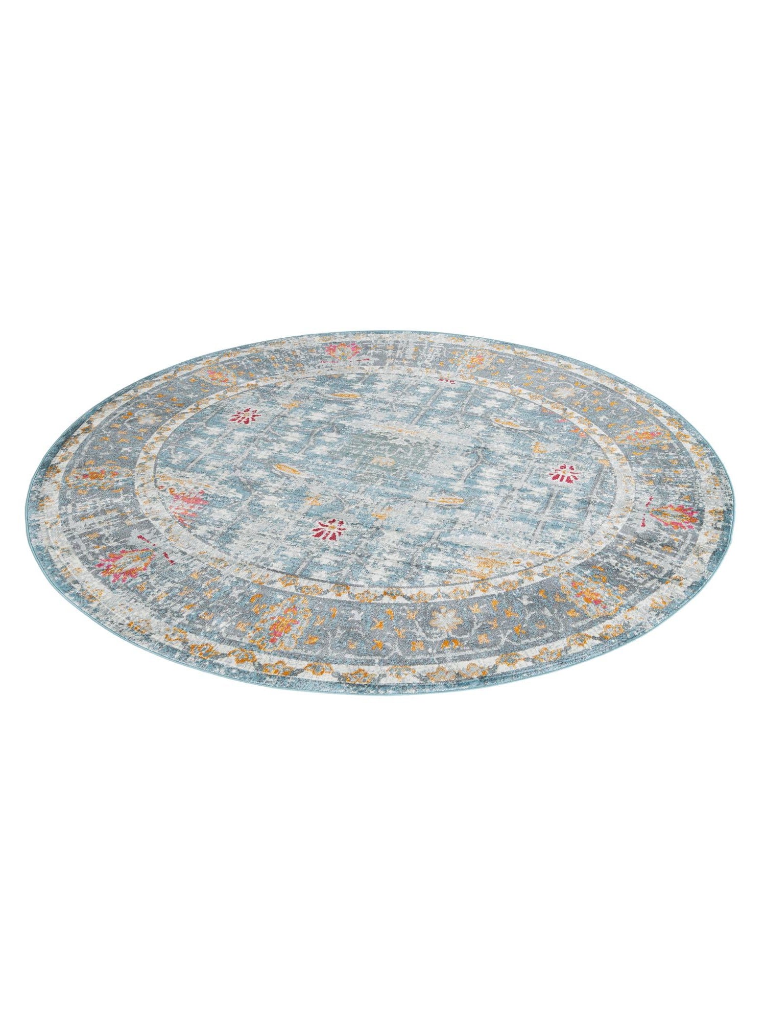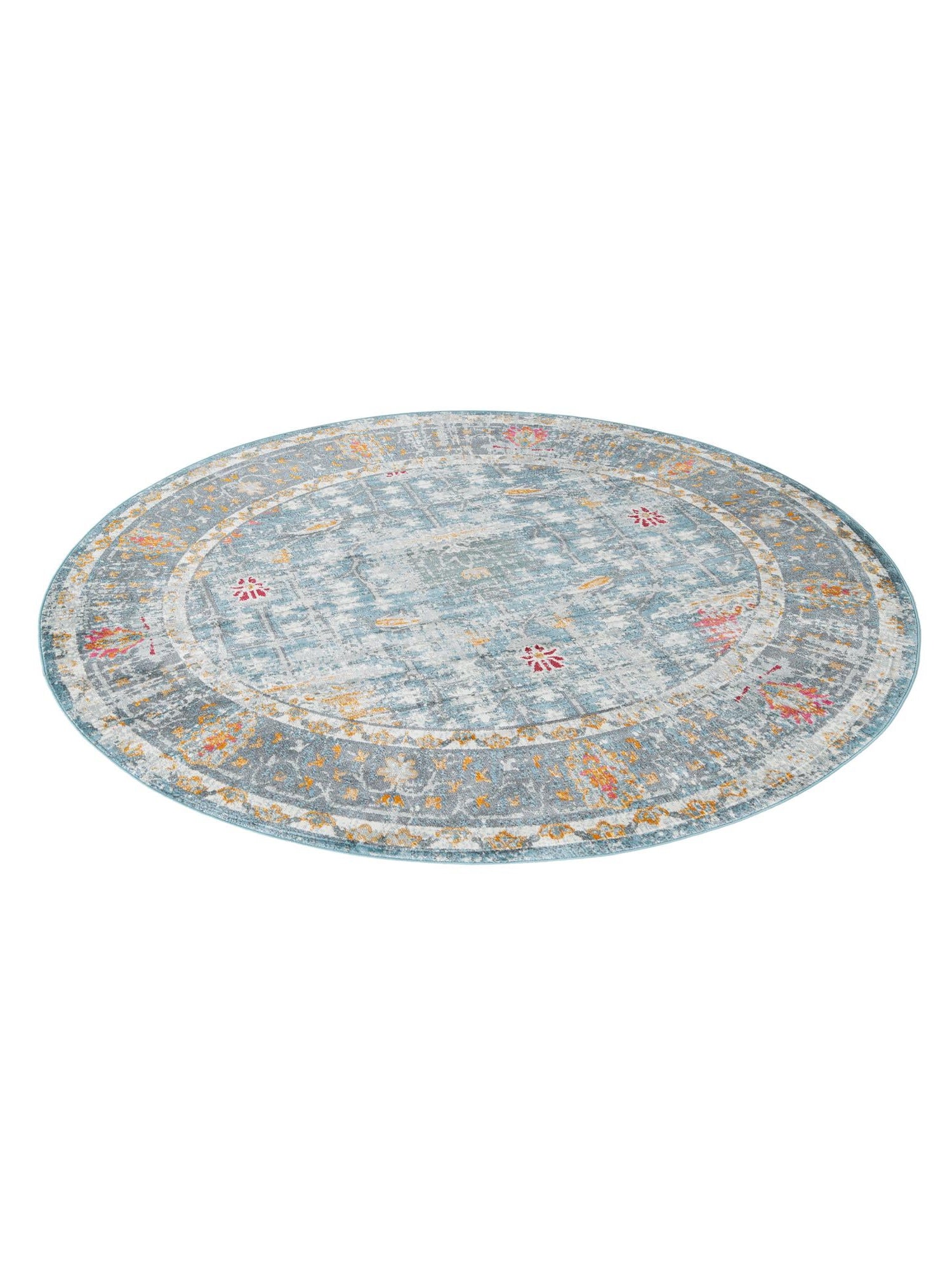 Washable Blue 5' x 5' Timeless Round Area Rug Easy to Clean Stain Resistant & Durable