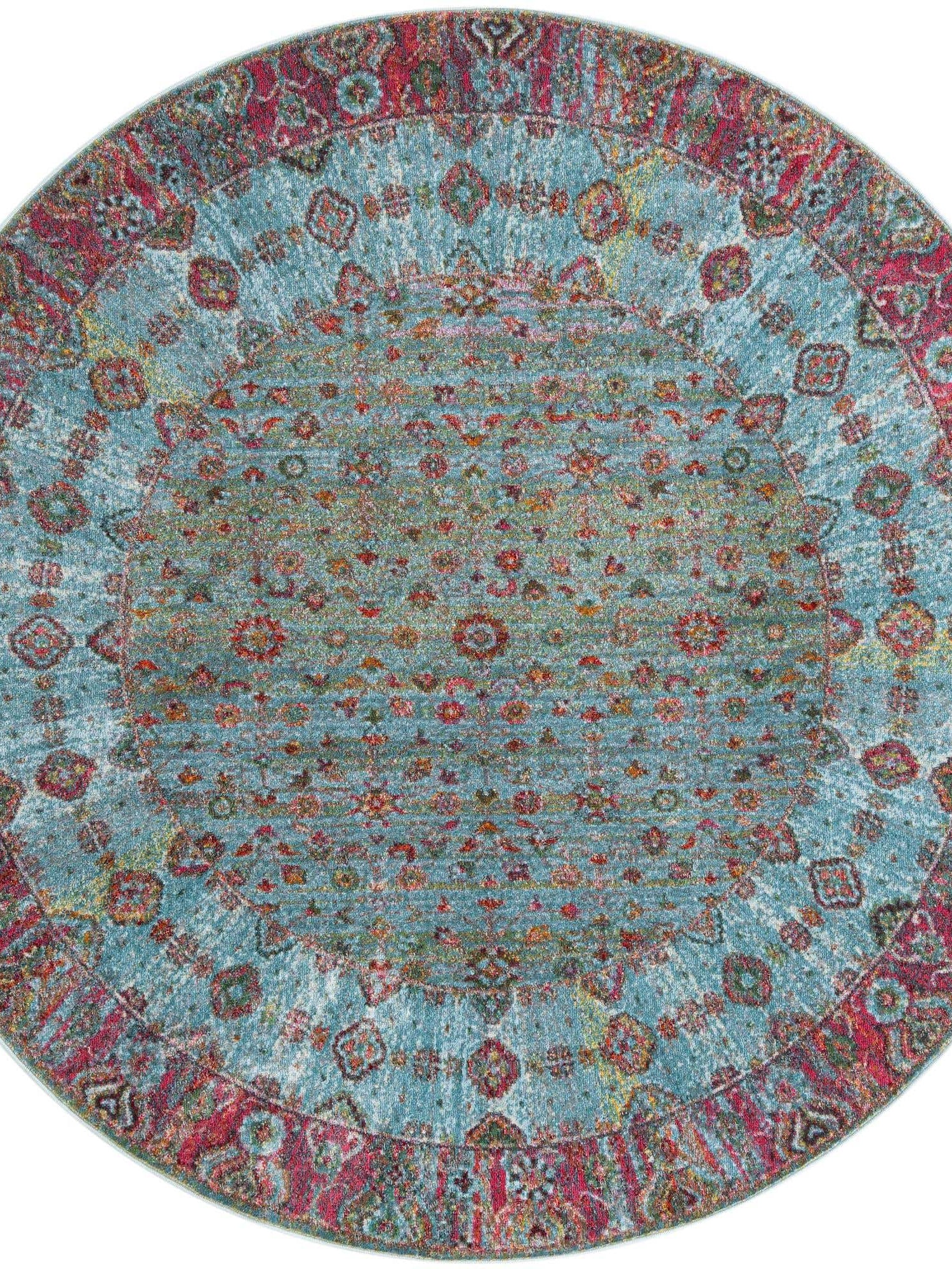 Blue 8' x 8' Baracoa Round Area Rug 100% Polypropylene Distressed Vintage Living Dining Room Office Traditional Carpet