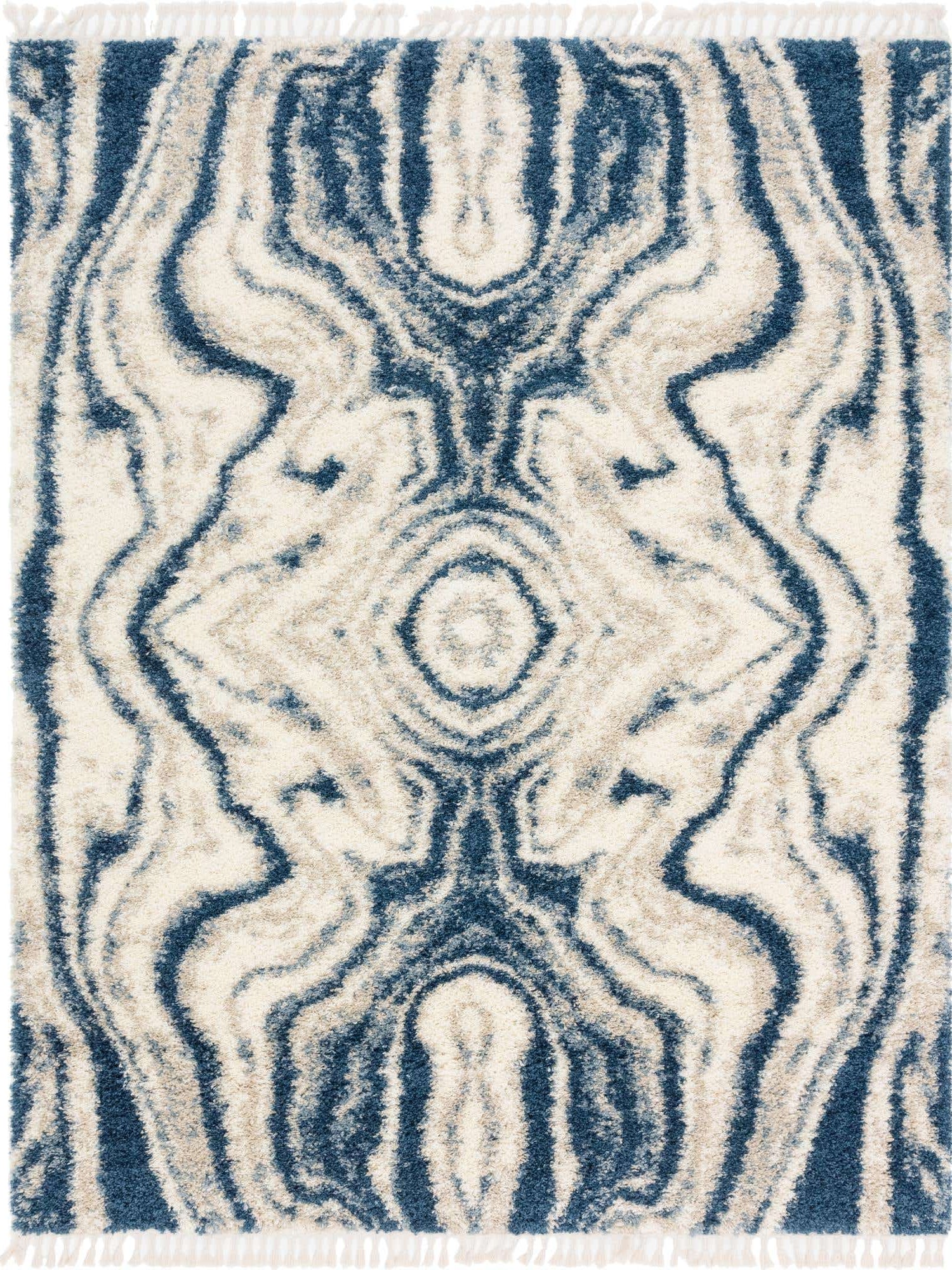 Blue 8' x 10' Hygge Shag Rectangle Area Rug Thick Soft Touch Fluffy & Plush Shaggy Pile 100% Polypropylene With Jute Backing Modern Carpet