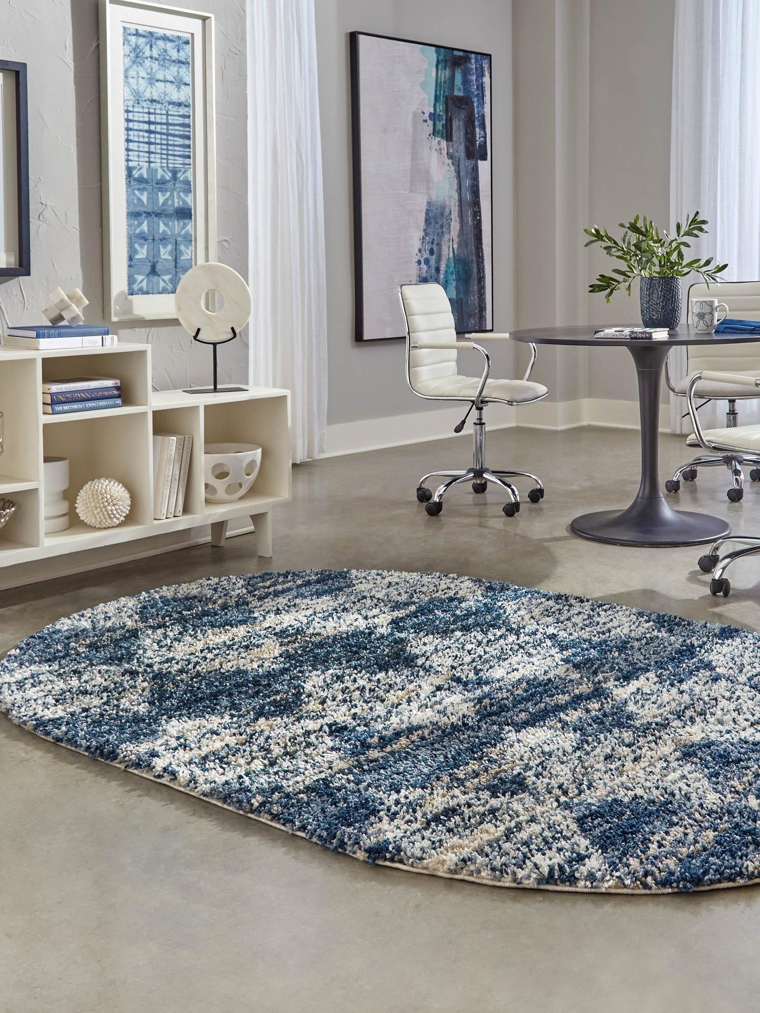 Blue 7' 10 x 10' Serenity Shag Oval Area Rug Thick Soft Tou...