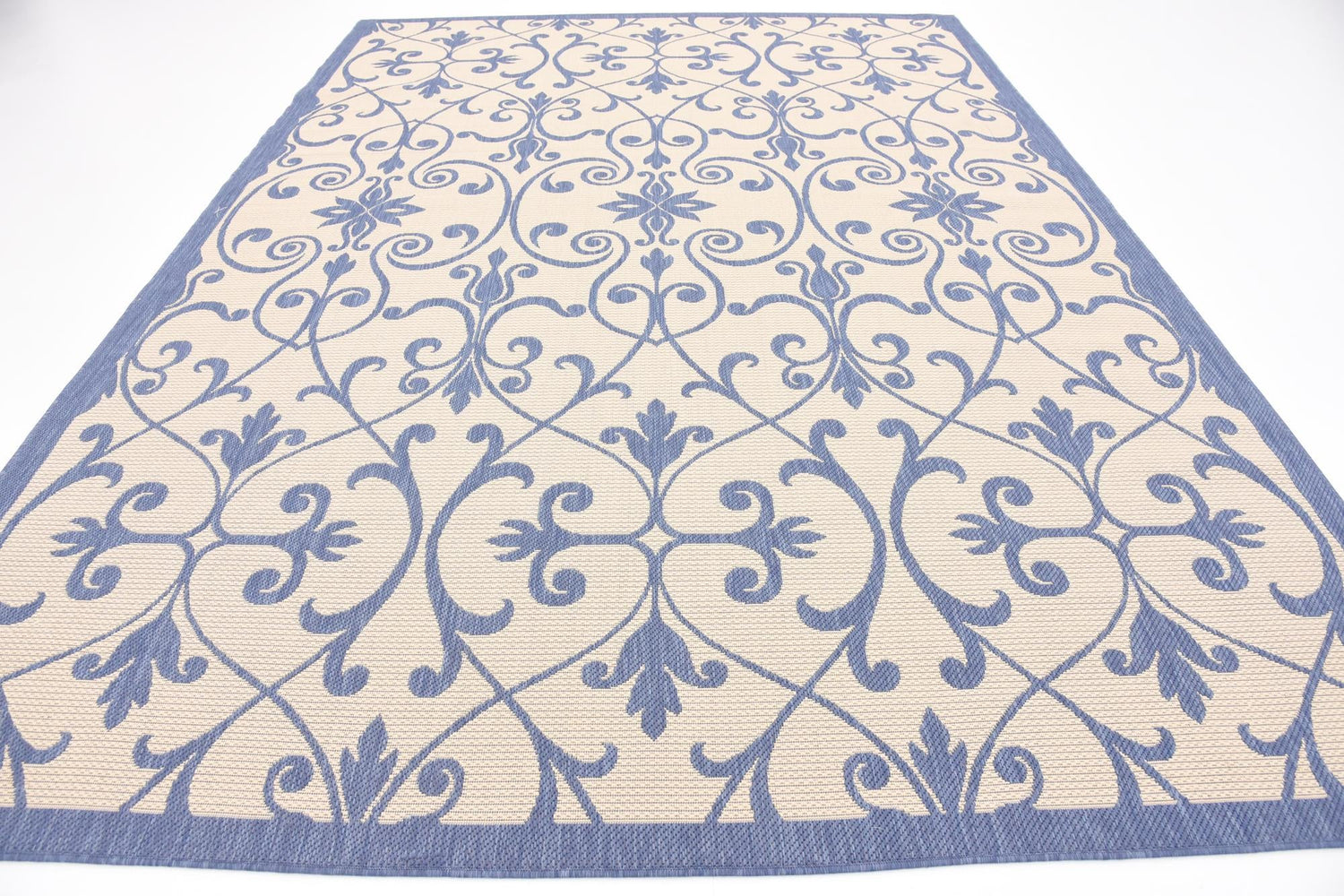 Blue 8' x 11' 4 Outdoor Botanical Rectangle Area Rug Weather Resistant for Patio, Deck, Terrace, Balcony, Porch