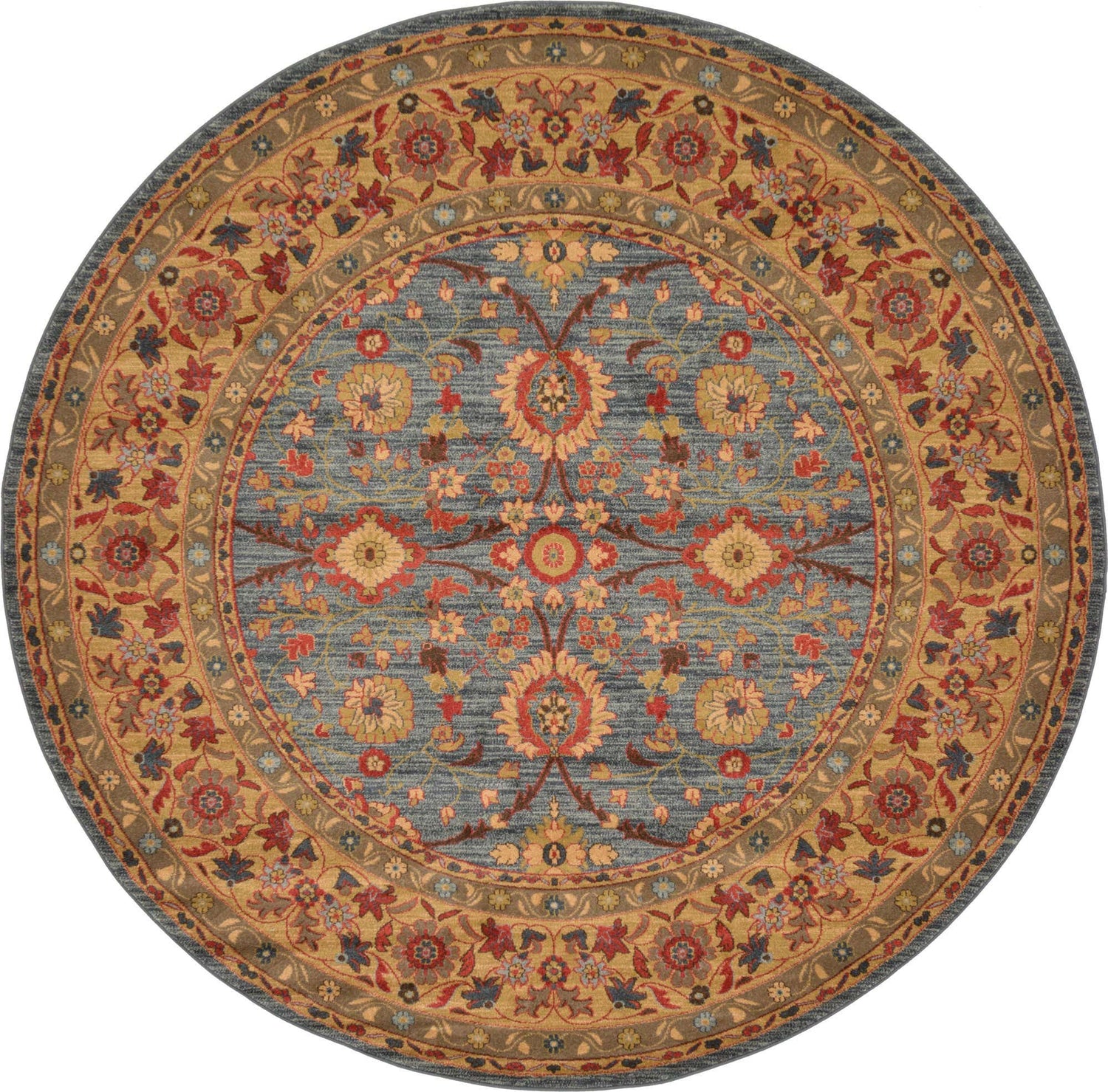 Washable Blue 5' x 5' Timeless Round Area Rug Easy to Clean Stain Resistant & Durable