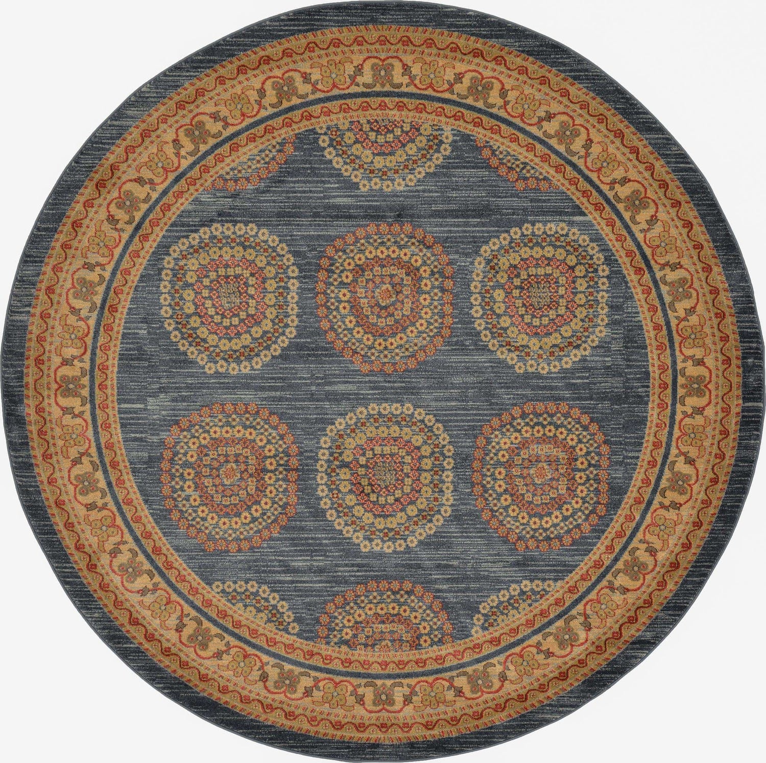 Washable Blue 5' x 5' Timeless Round Area Rug Easy to Clean Stain Resistant & Durable