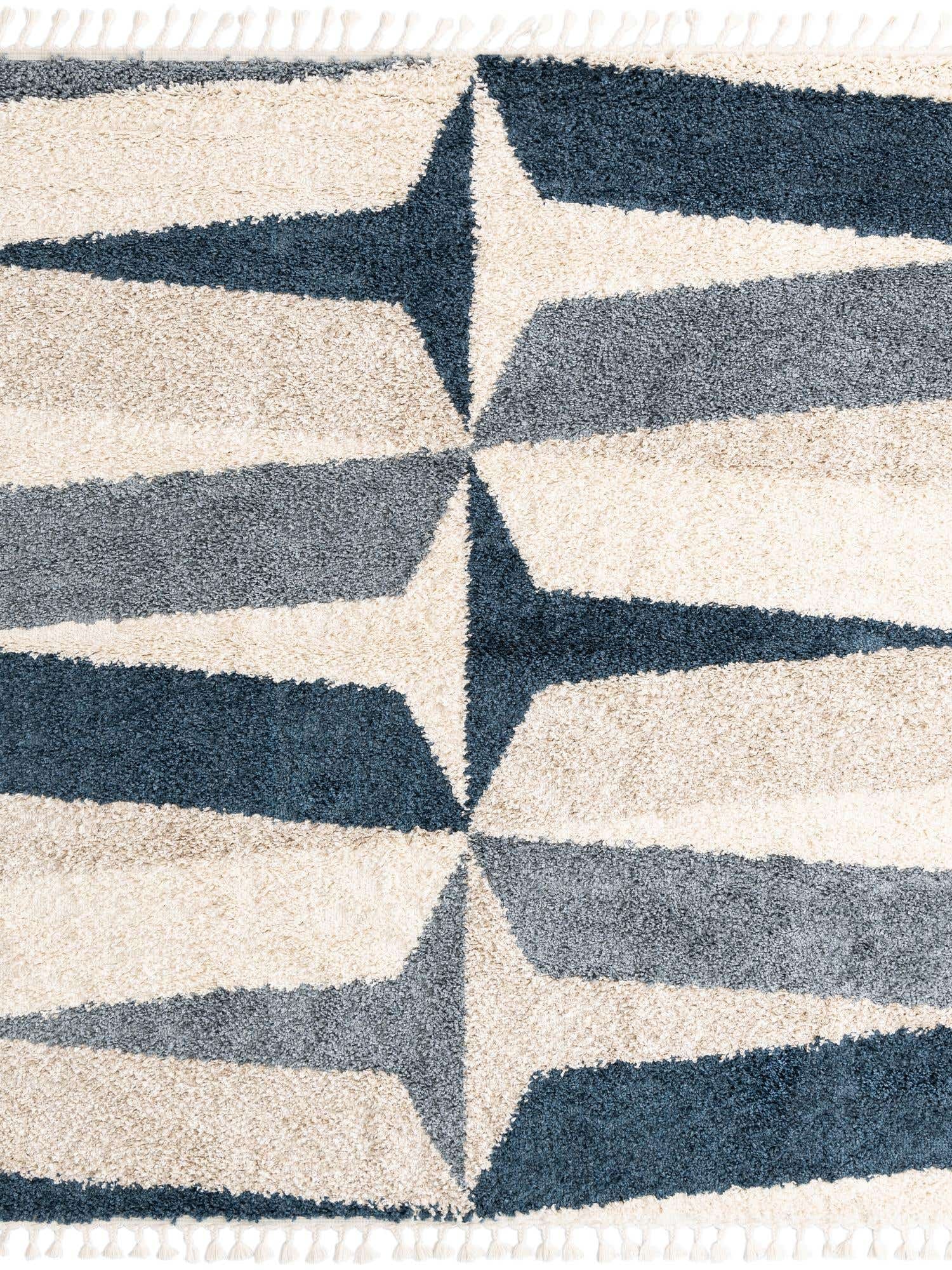 Blue 8' x 8' Hygge Shag Square Area Rug Thick Soft Touch Fluffy & Plush Shaggy Pile 100% Polypropylene With Jute Backing Modern Carpet