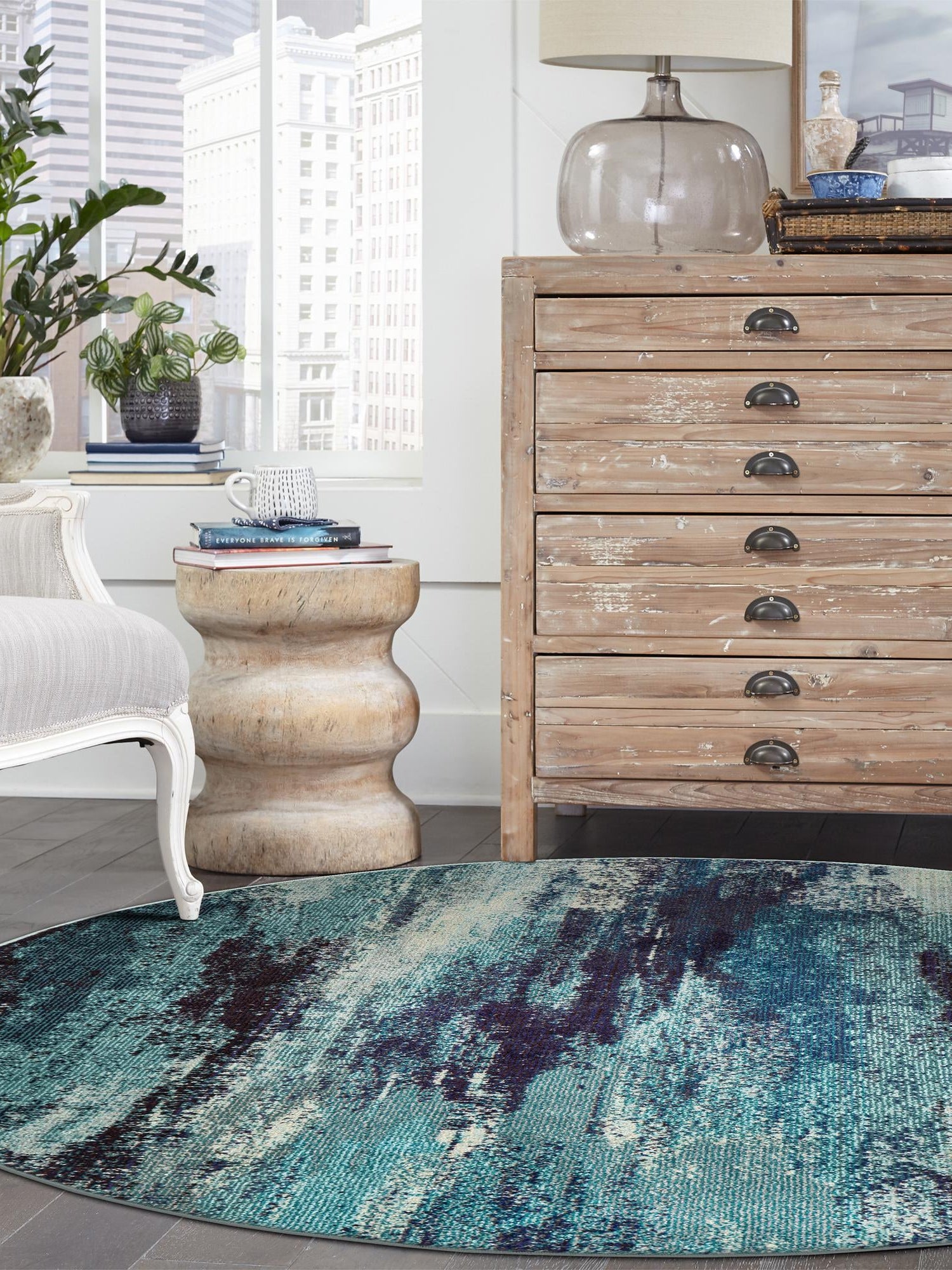 - Generous Size and Shape: Measuring 7' 10" x 7' 10", this round rug is perfect for adding a bold statement to any space. Its ample size allows for versatile placement in living rooms, dining areas, or outdoor patios. Embrace its round shape to enhance flow and movement in your home design.