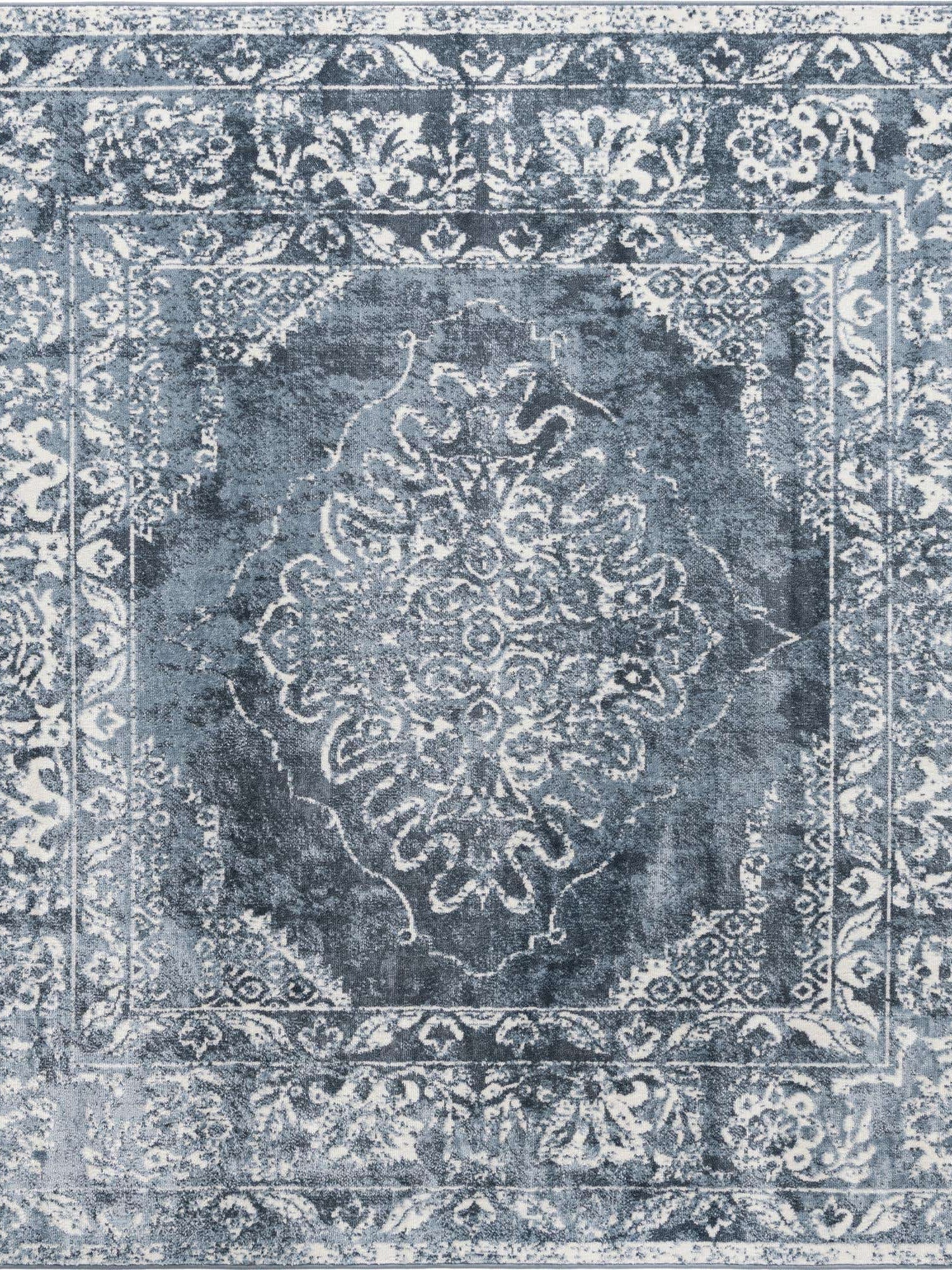 Washable Gray Blue 2' x 3' 1 Renaissance Rectangle Area Rug Easy to Clean Stain Resistant & Durable