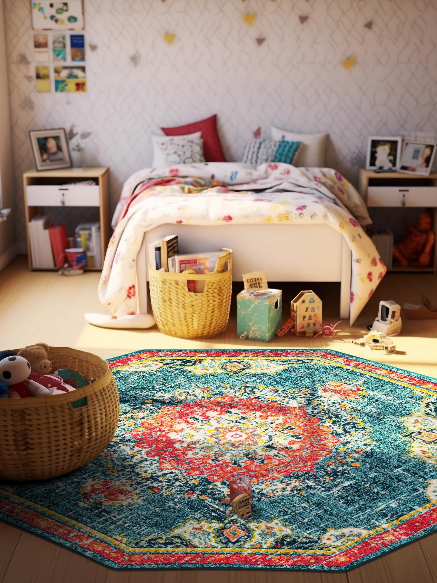 - Spacious Dimensions: Measuring 8 feet by 8 feet, this octagon-shaped rug offers ample coverage for your living space. Its unique shape helps to define areas within a room, making it a perfect choice for both large and cozy environments. The generous size ensures it can fit comfortably in various settings, from family rooms to dining areas.