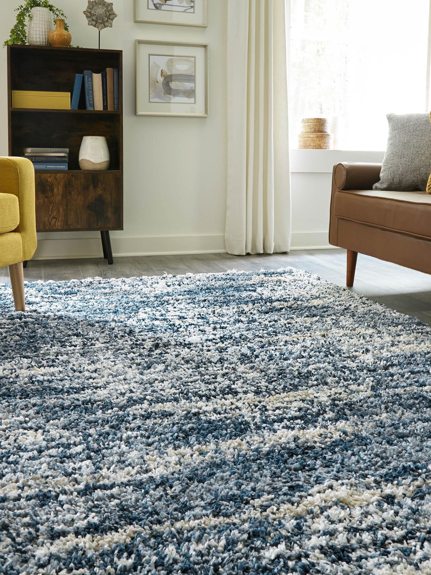 Blue 9' x 12' Serenity Shag Rectangle Area Rug Thick Soft T...