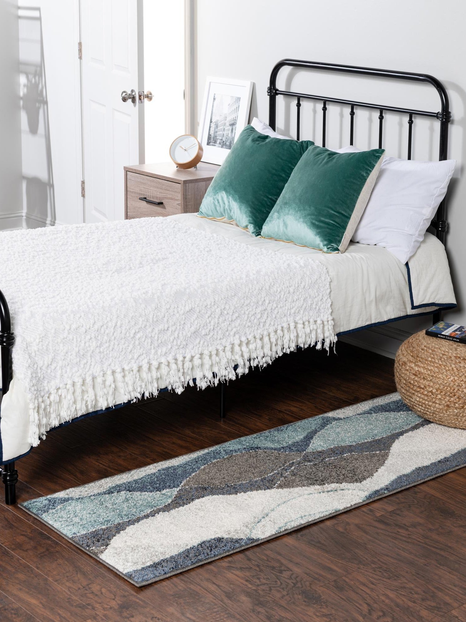 Blue Gray 2' 7 x 10' Autumn Runner Area Rug 100% Polypropylene Durable Jute Backing Living Dining Room Bedroom Office Modern Decor Carpet