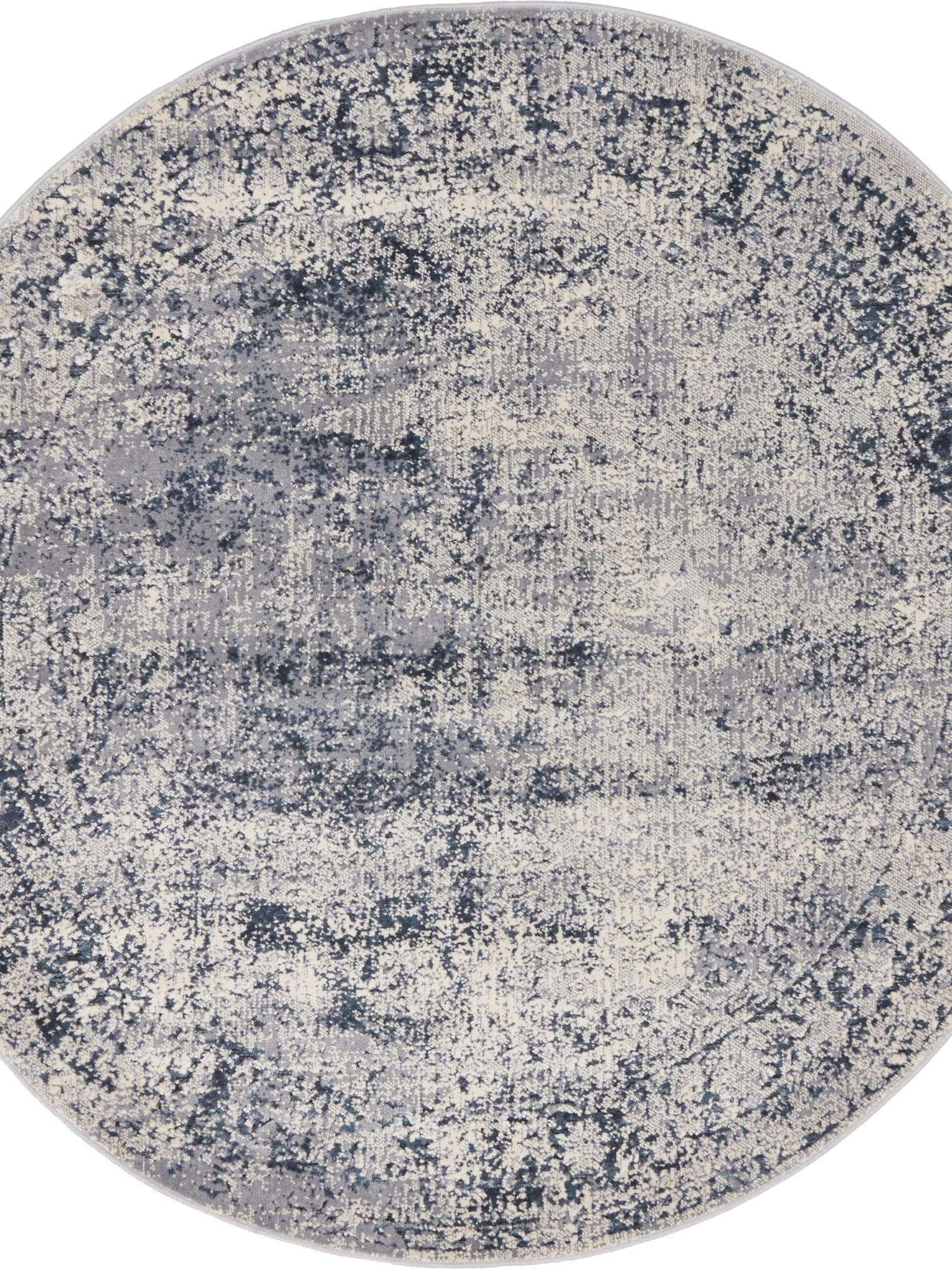 Blue Gray 5' 3 x 5' 3 Chateau Round Area Rug 85% Polypropylene & 15% Chenille With Cotton Backing Traditional Vintage Distressed Carpet for Classical Interior Design Decorating