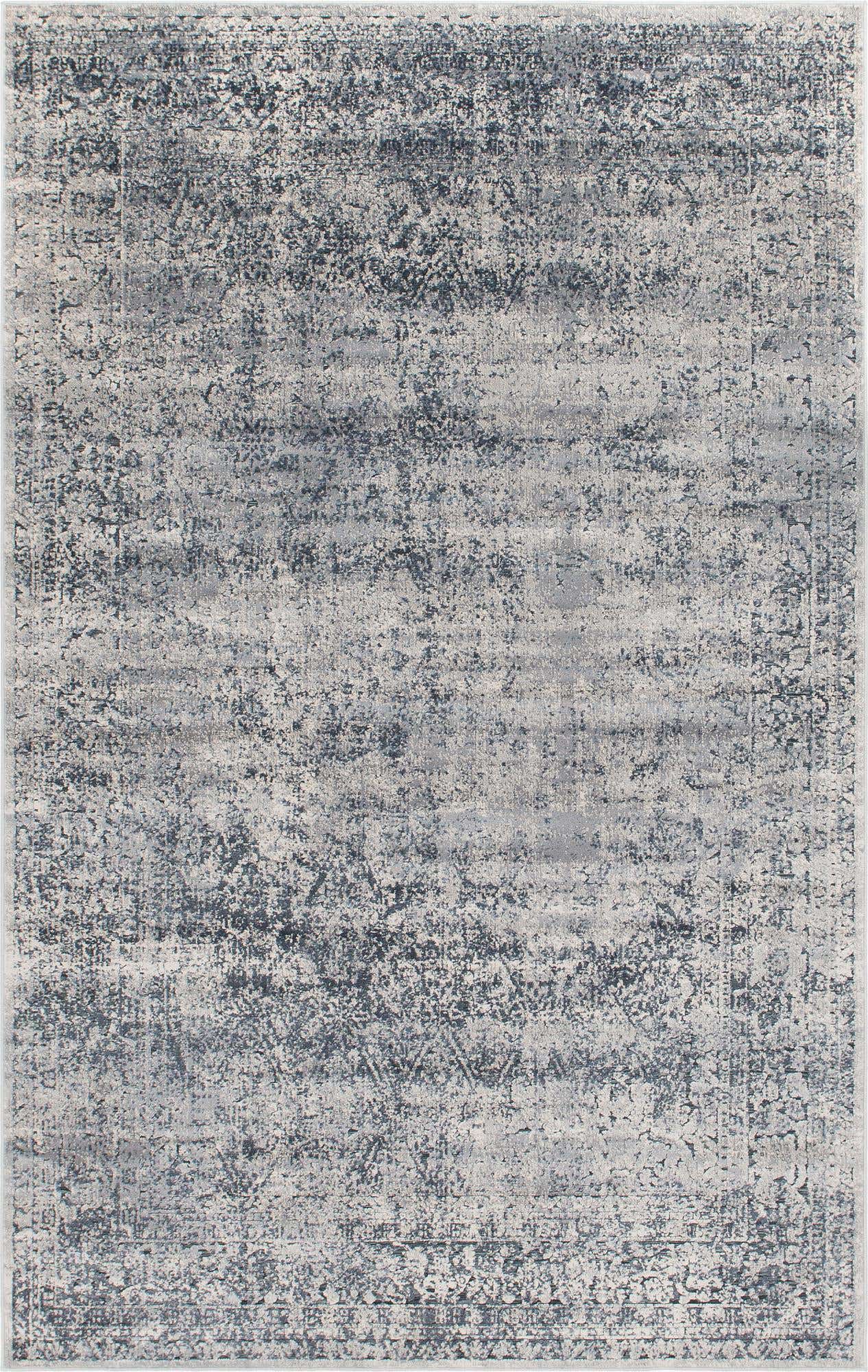 Blue Gray 6' 1 x 9' Chateau Rectangle Area Rug 85% Polypropylene & 15% Chenille With Cotton Backing Traditional Vintage Distressed Carpet for Classical Interior Design Decorating