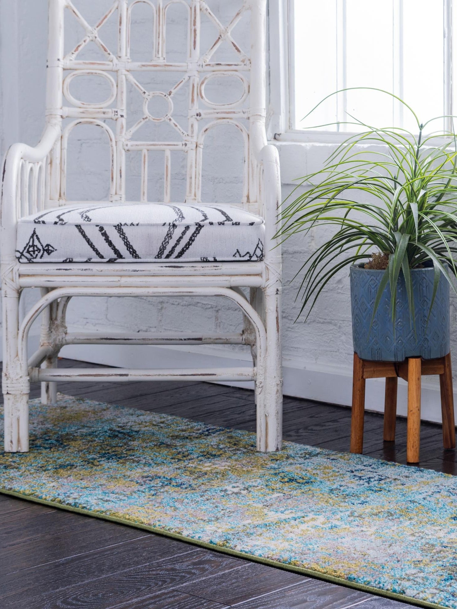 Blue Green 2' 2 x 6' 7 Chromatic Runner Area Rug 100% Polyp...