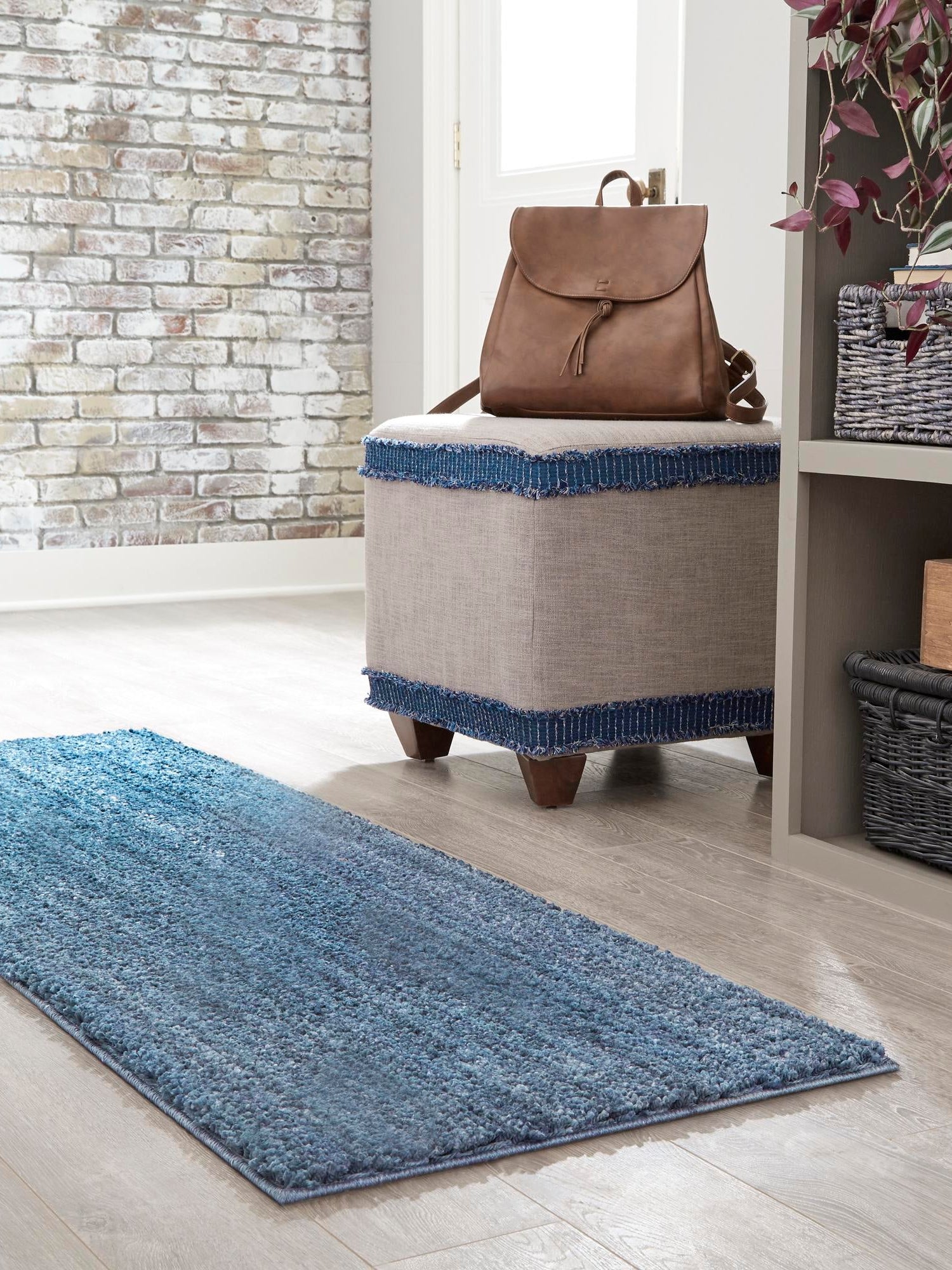 Blueberry Blue 2' 7 x 10' Jill Zarin Shaggy Chic Runner Are...